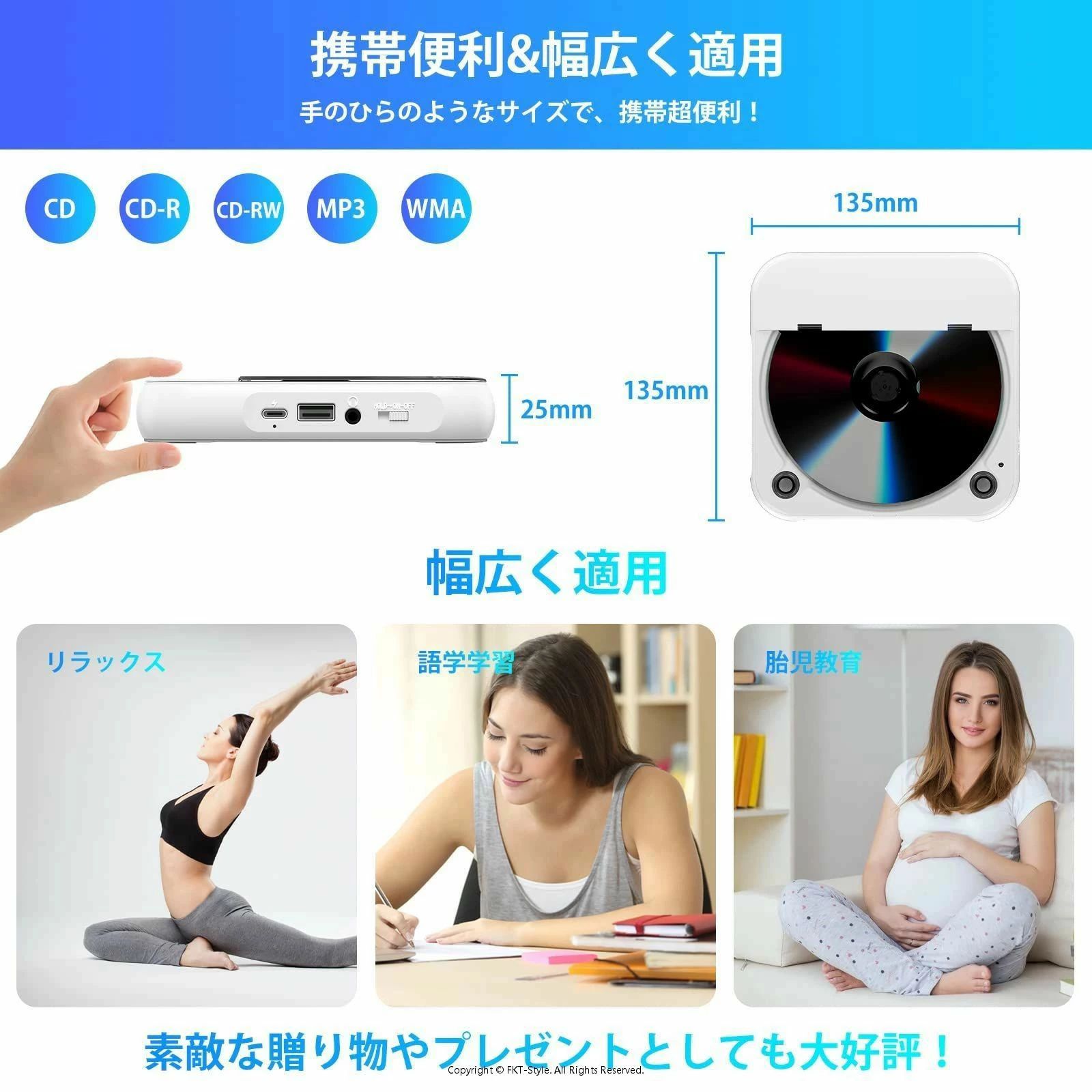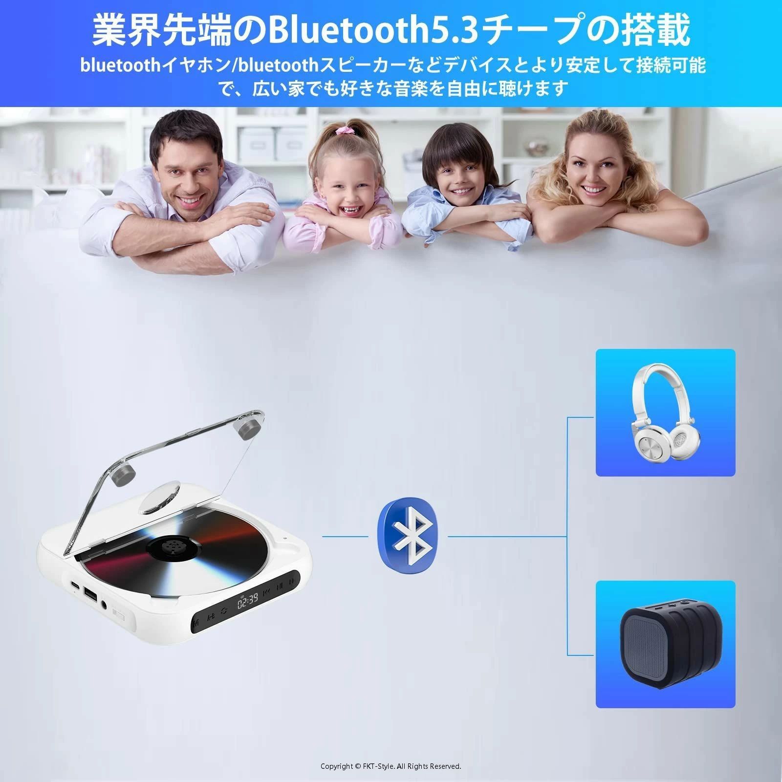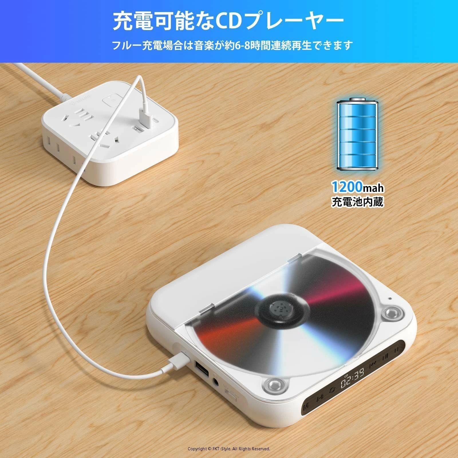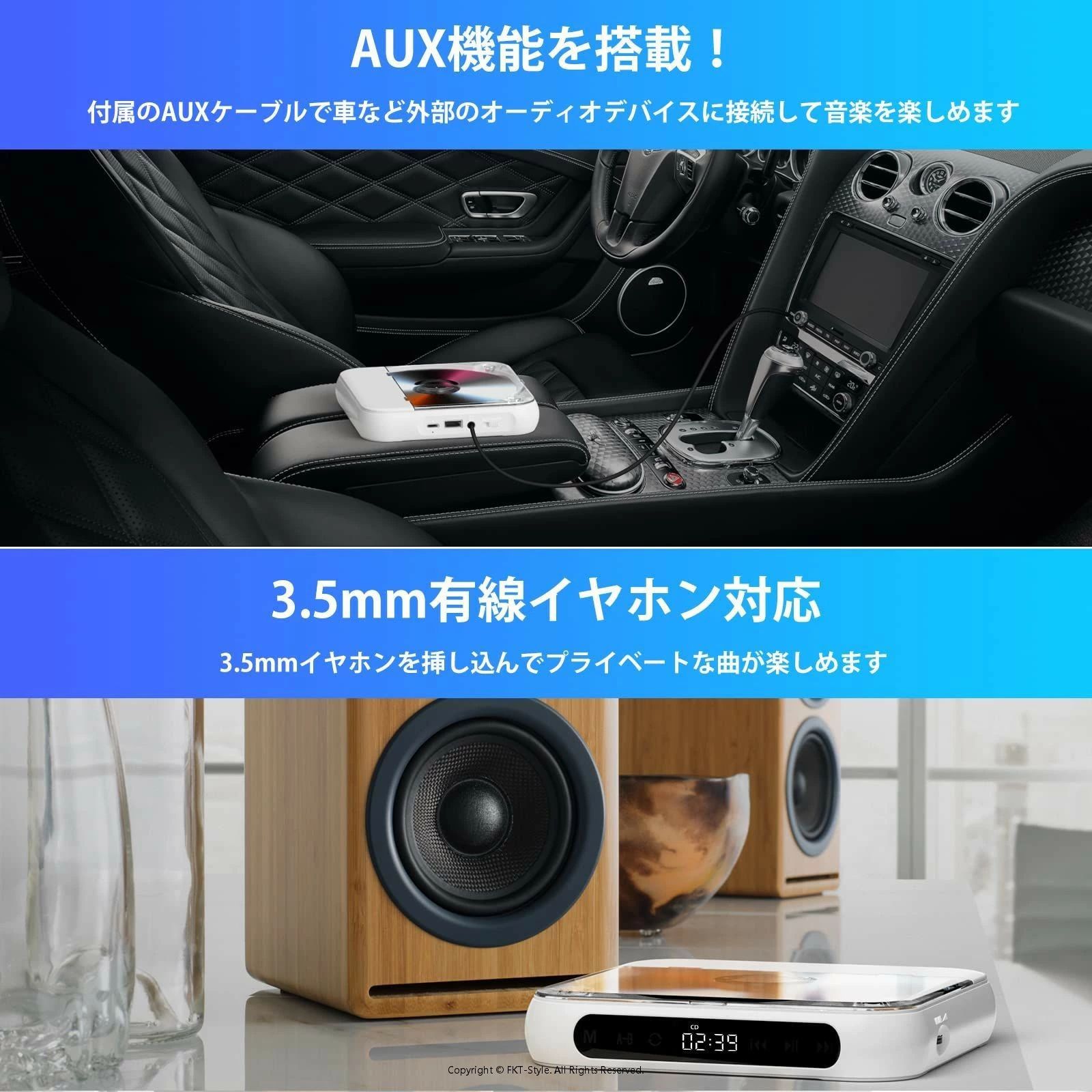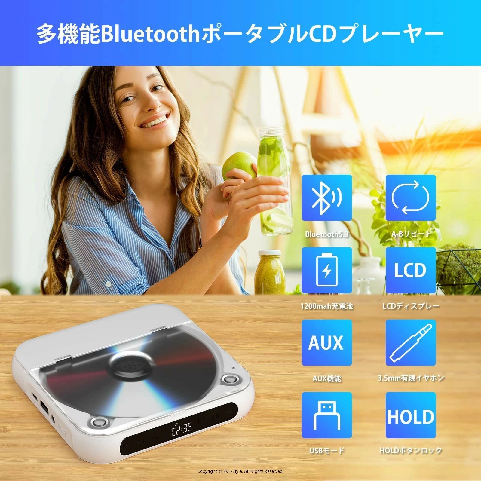 「デザインが簡単なポータブルCDプレーヤー」製品の真ん中に液晶画面と主な操作ボタンだけのシンプルなデザインですので、一目で簡単に操作が可能です。また、3.5mmイヤホンジャックを搭載しており、3.5mmイヤホンを挿し込んでプライベートな曲が楽しめます。注意:CDプレーヤーが正常に操作できるために、底面のHOLDキーをOFFにしてから電源を入れてください
