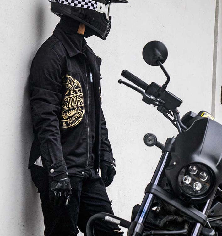 高強度、高耐磨素材で、万が一の転倒時にもアスファルトからの擦過傷からガード。