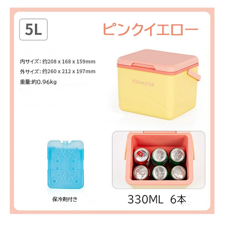 クーラーボックス5L 5.5L 12L スポーツ アウトドア 新作 ノルディックブルー パープルタロウ パールホワイト ピンクチェリー 5Lイエロー 5Lピンクイエロー 5L 5.5L 12L 20L
