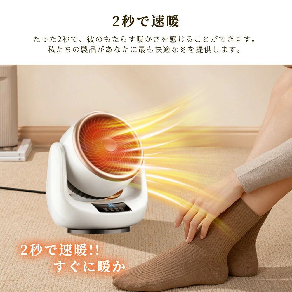 【2秒速暖操作簡単】ただ2秒で熱風を出し、外出の帰りでも早速、寒気を退散させ、体が早めに暖かくなることができます。ワンダイヤルボタンでどなたでも簡単に操作できるので寒い日に外帰り、起床、就寝前、寝る、洗面所、脱衣所、キッチンに、寝室に欠かせない電気ファンヒーターです。