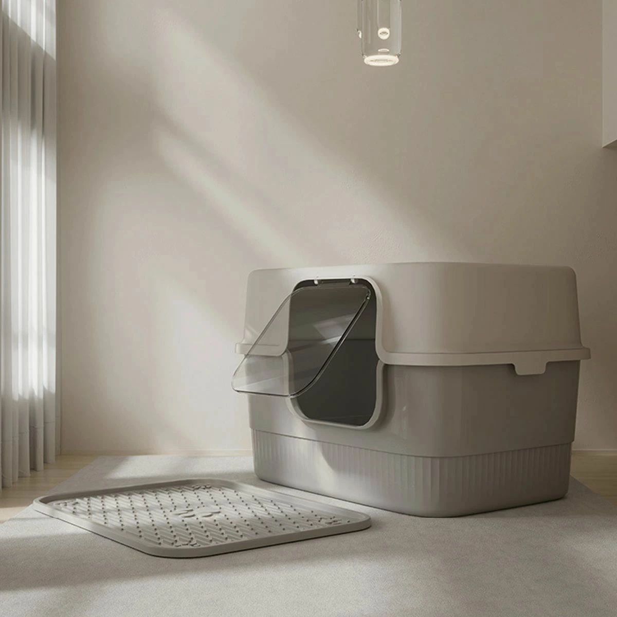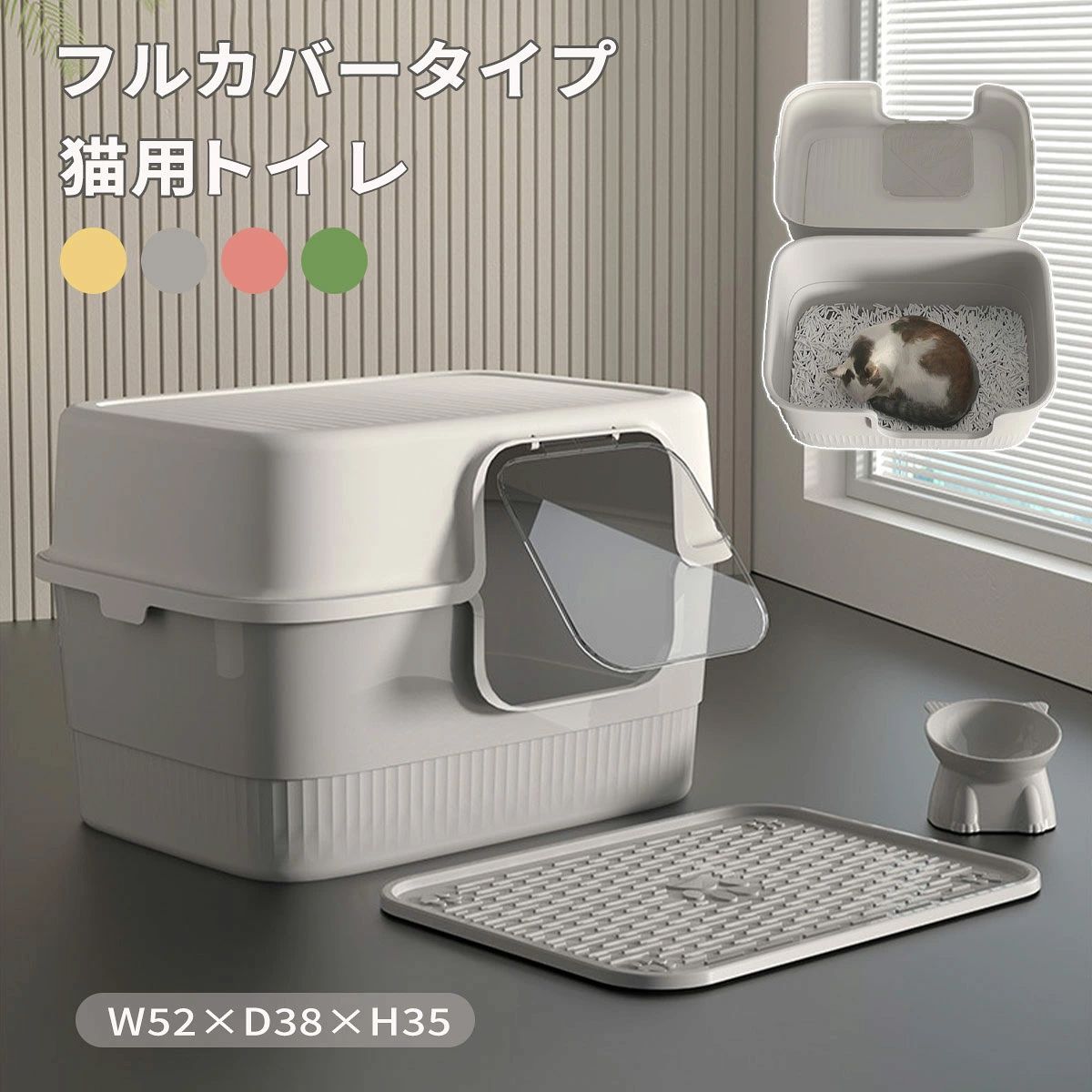 猫トイレ カバー 飛び散らない 大きめ ペット ペットグッズ 新作 グレー イエロー ピンク グリーン グレー(マット付き) イエロー(マット付き) ピンク(マット付き) グリーン(マット付き)