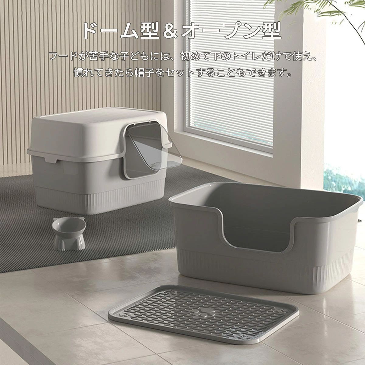 猫トイレ カバー 飛び散らない 大きめ フード付き トイレ 体型カバー カバーマーク 大型 砂落としマット付き ネコトイレ 猫 フルカ 深め
