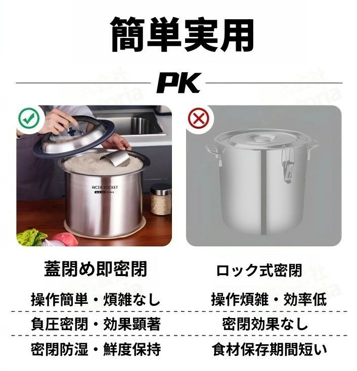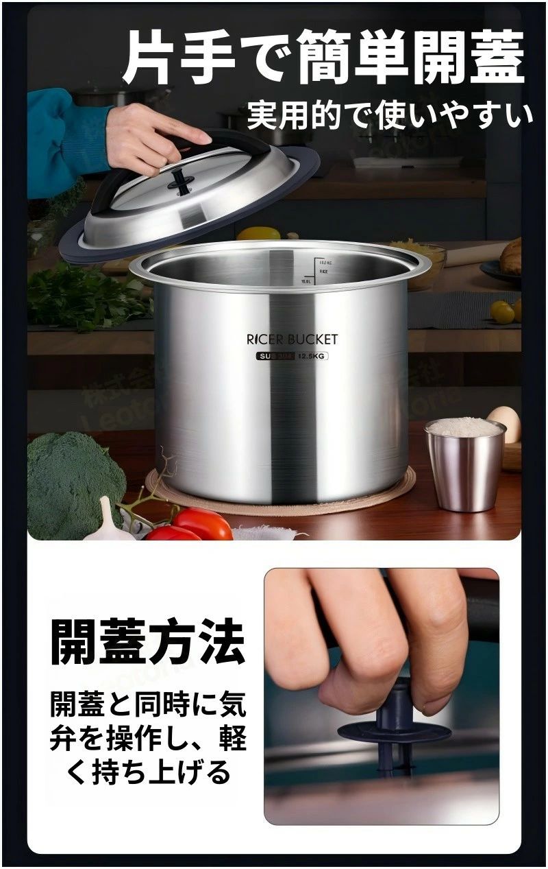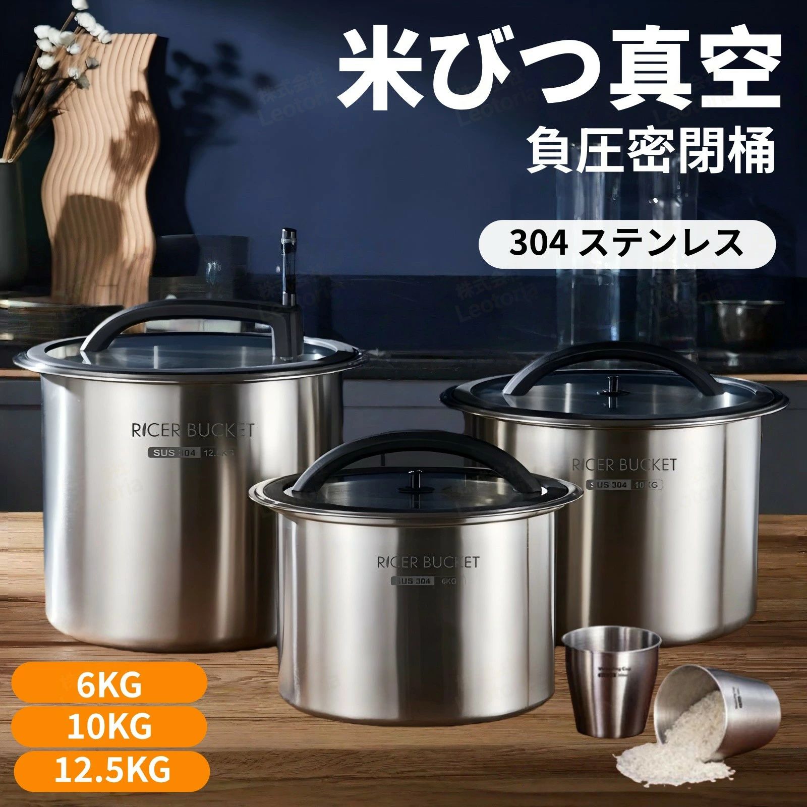 米びつ 真空 米櫃 密閉米びつ 保存容器 負圧シール ステンレス製の米びつ ライスストッカー ステンレス製米桶 304ステンレス鋼 商業 米