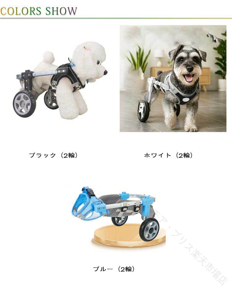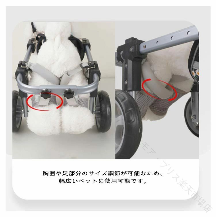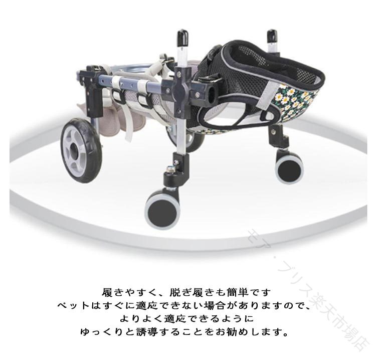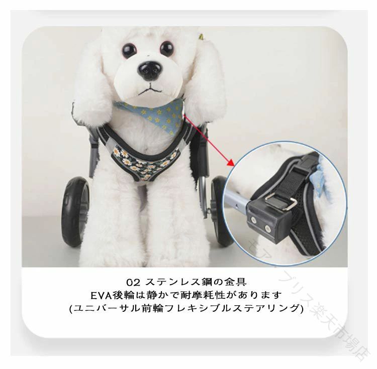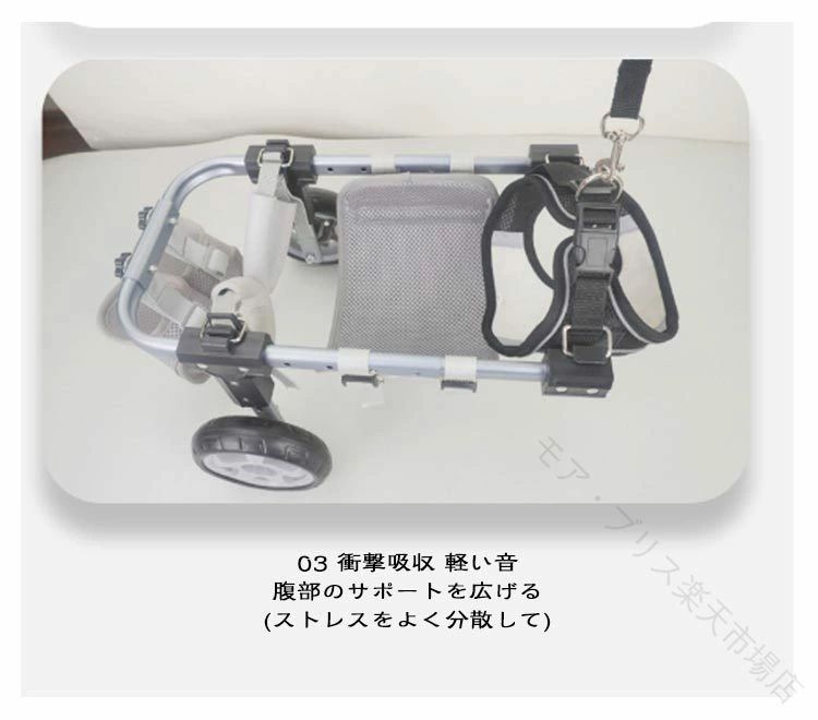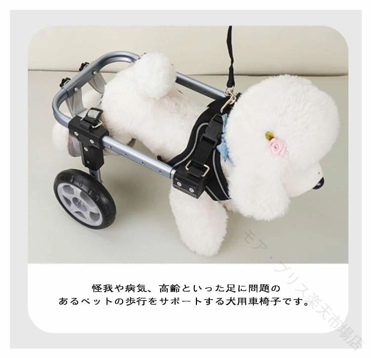 犬用車椅子XS/S/M/L【1】愛犬を元気に散歩出来きるになるようにするし、飼い主のストレスを軽減可能です。【2】胸囲や足部分のサイズ調節が可能なため、幅広いペットに使用可能です。【3】怪我や病気、高齢といった足に問題のあるペットの歩行をサポートする犬用車椅子です。#01衝撃吸収 軽音航空用アルミニウム(より強いより軽い)複数のレベルに調整可能#02 ステンレス鋼の金具EVA後輪は静かで耐摩耗性があります(ユニバーサル前輪フレキシブルステアリング)#03 衝撃吸収 軽い音腹部のサポートを広げる(ストレスをよく分散して)足に優しくサポートします。(通気性があり、柔らかく快適です)履きやすく、脱ぎ履きも簡単ですペットはすぐに適応できない場合がありますので、よりよく適応できるようにゆっくりと誘導することをお勧めします。