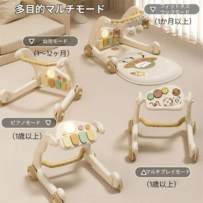 ベビージム ピアノ 5in1 多機能 ジム&ウォーカー 二合一 双面プレイ 安全エコ素材 知育玩具 0ヶ月から3歳 室内遊び 音楽