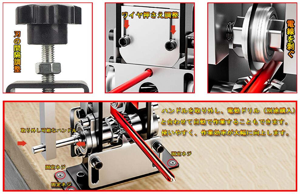 ワイヤーストリッパー 手動剥線機 Φ1mm-Φ20mm ワイヤー適用 剥線器 電線皮むき工具 ケーブル剥離機 スムーズに剥け スムーズに剥ける