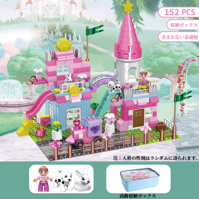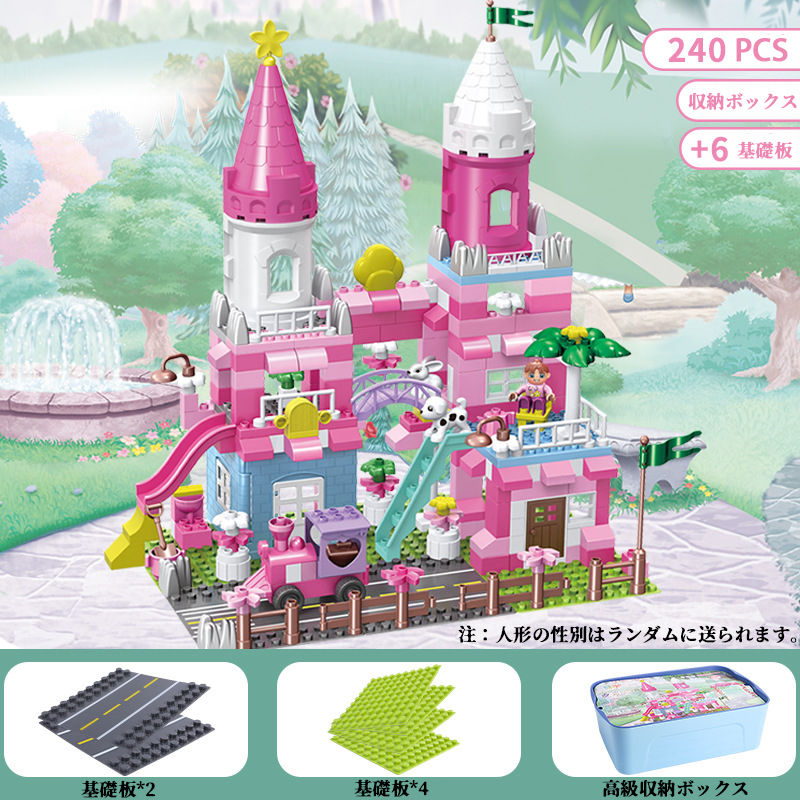 人形+基礎板6枚+高級収納ボックス付き ピンク ブロック おもちゃ プリンセス キャッスル お城 レゴ互換 lego互換 女の子 知育 教材 クリスマスプレゼント 誕生日のプレゼント 卒業祝い