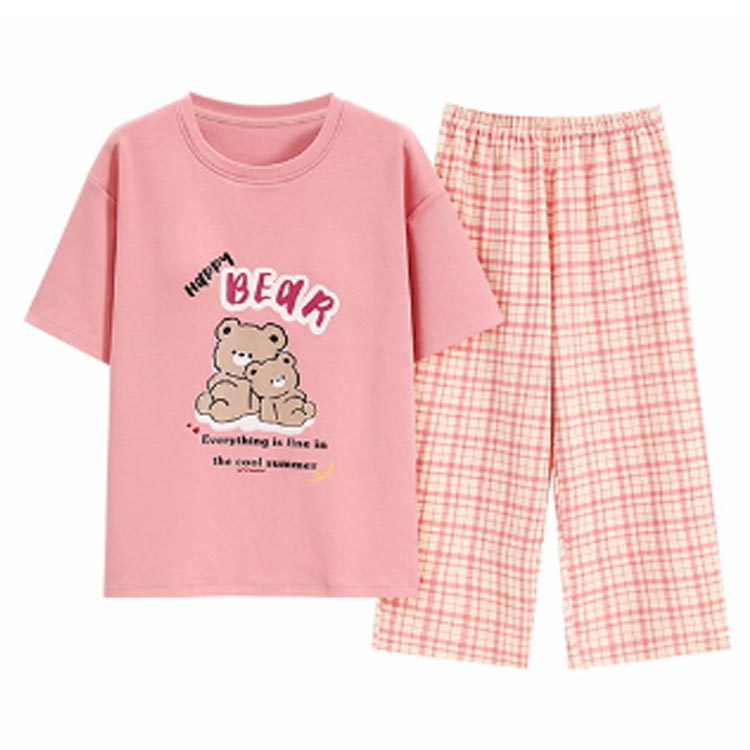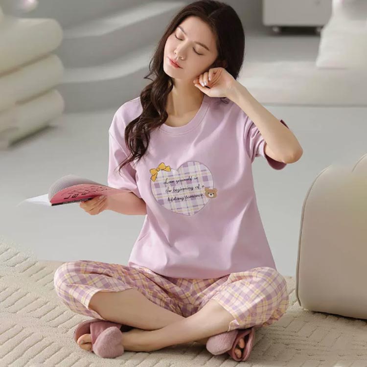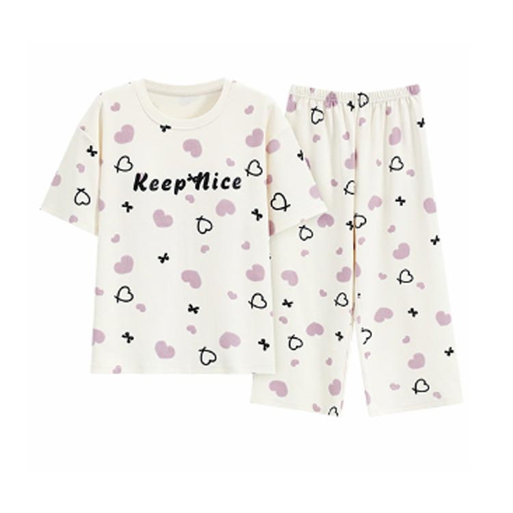 カップ付き パジャマ ポケットあり プレゼント 上下セット 寝間着 Tシャツ 七分丈 半袖 パンツ 綿 コットン 部屋着 寝巻き レディ 薄手