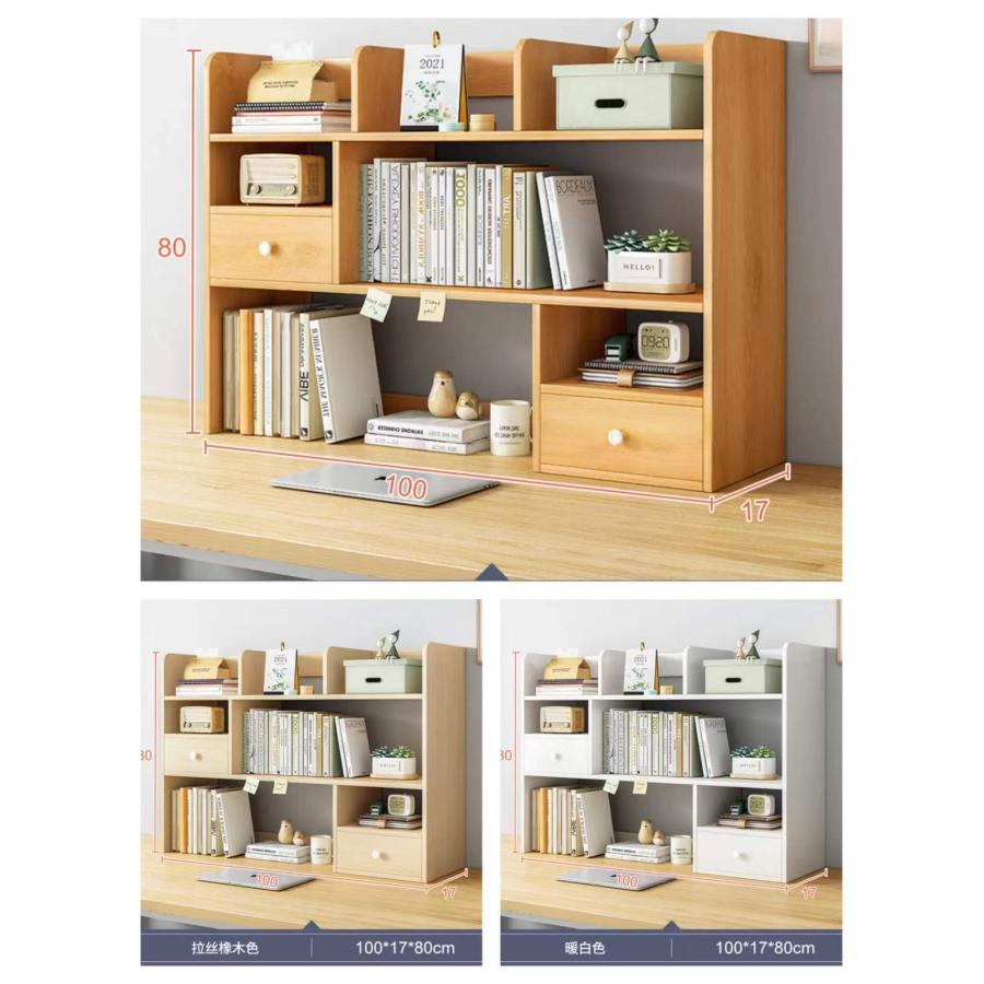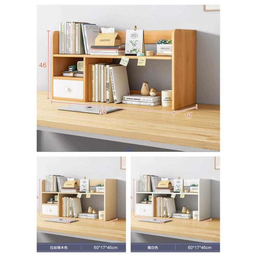 卓上収納ラック 本棚 デスク上収納ラック デスク上置棚 書架 木製 書類整理 大容量 引き出し 卓上整理棚 多機能 文具用品 組み立て簡単