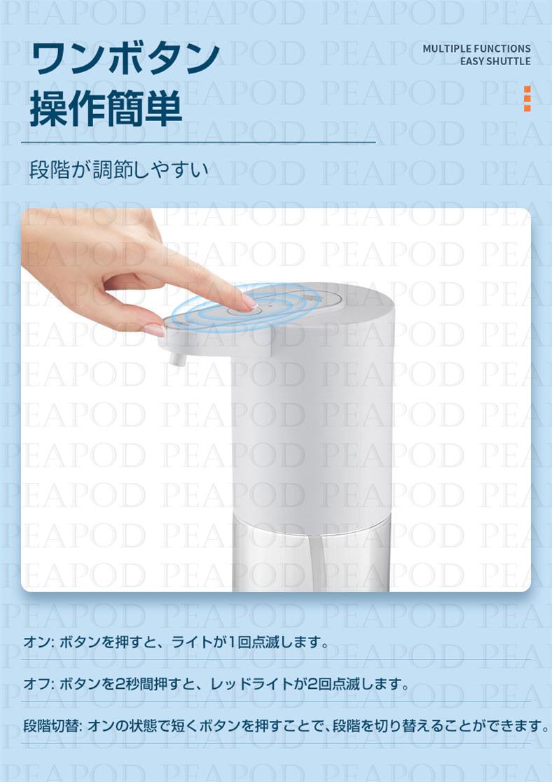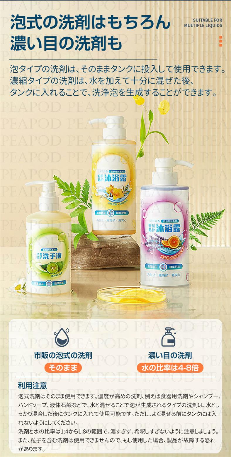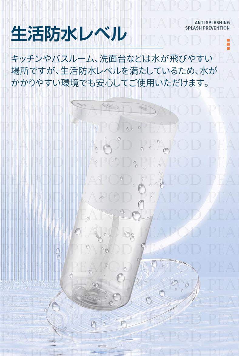 電池式で場所を選ばず設置可能なため、キッチンや玄関、バスルームなど、さまざまな場所に最適です。また、4段階の吐出量調節機能を備えており、使用するシーンに応じて最適な量を選べます。センサー機能により、手をかざすだけで自動で泡が出るため、衛生的で使い勝手も抜群です。