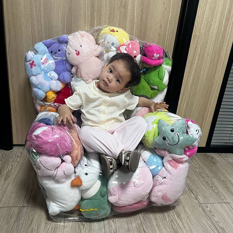 ◆ 大容量で多用途に使える収納スペース。ぬいぐるみはもちろん、衣類、布団、雑貨など様々なアイテムをまとめて収納でき、すっきりと片付けられます。