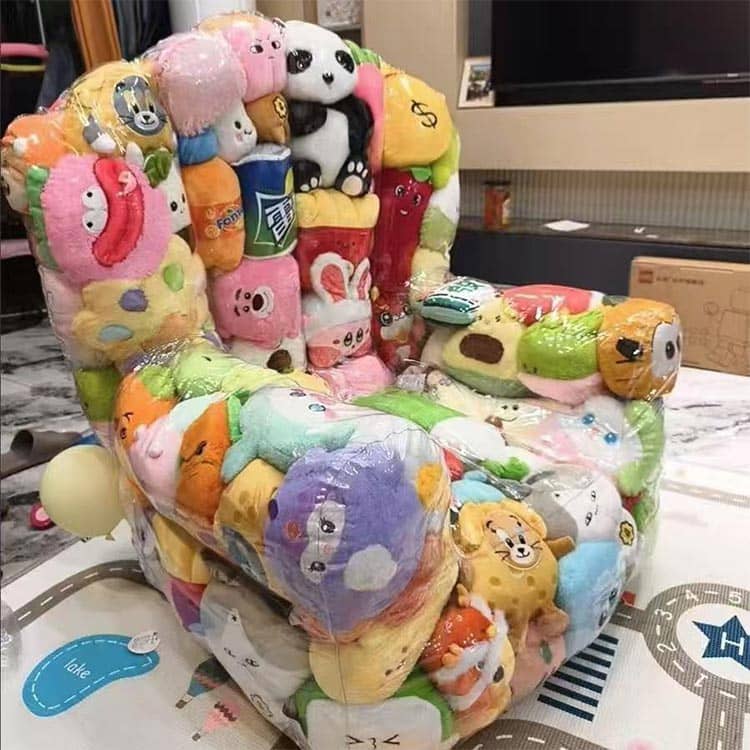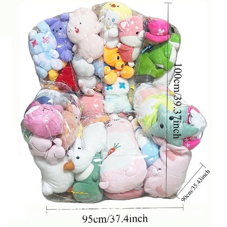 ぬいぐるみ収納 チェア ビーンバッグ 透明 100*90*95cm ぬいぐるみ 収納 ソファ 背もたれ付き 椅子 ビニール椅子 大きめ キッズ 子供用 ローソファー おもちゃ 収 ソファー