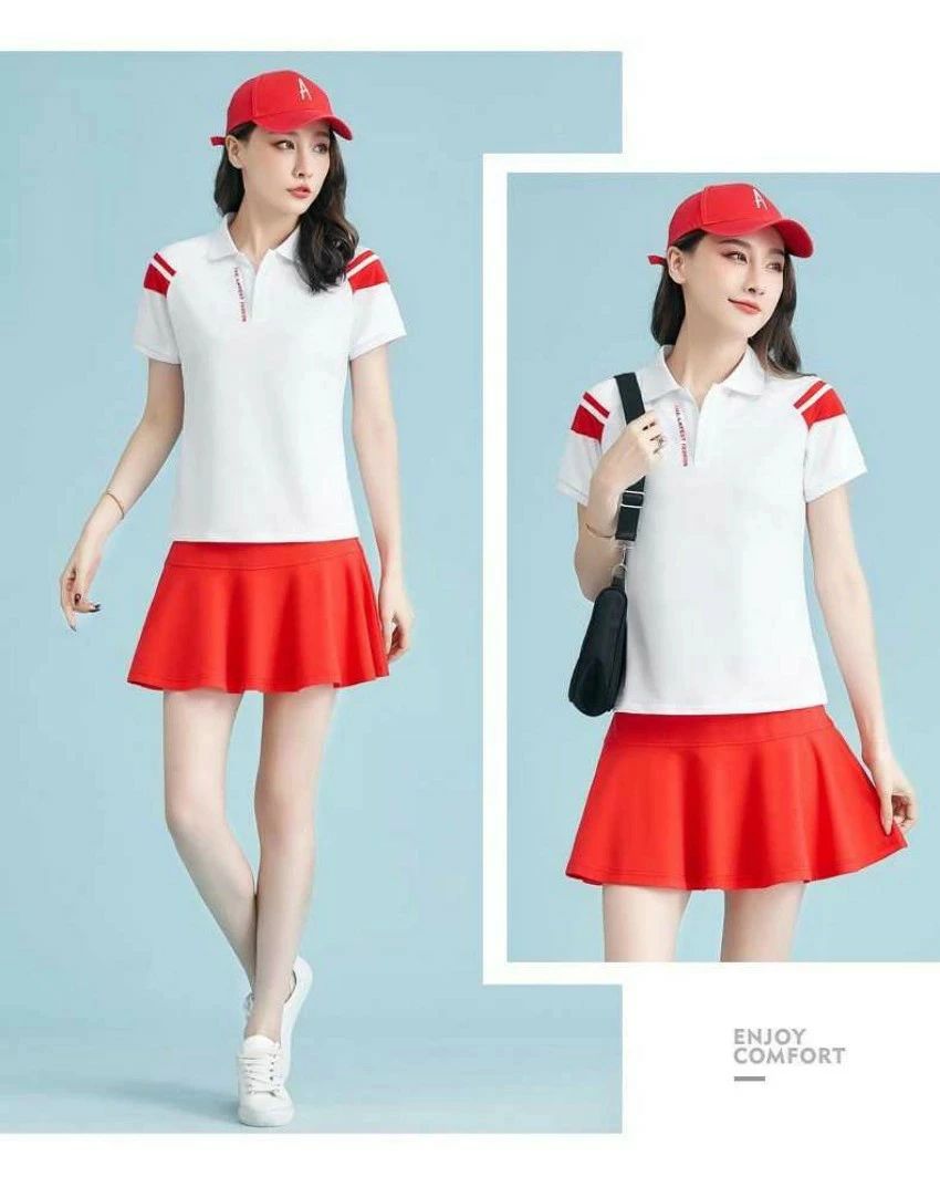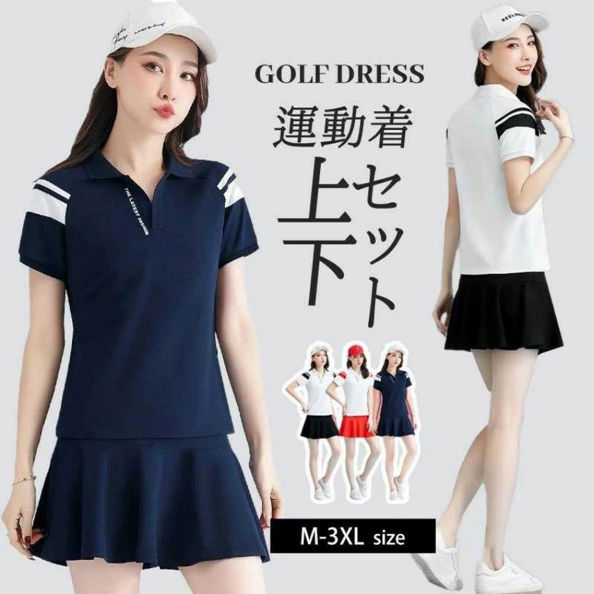 テニスウェア ゴルフウェア スポーツ ピンク カジュアル ポロシャツ スポーツウキュロットスカート 夏