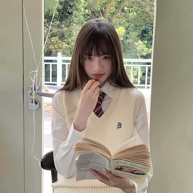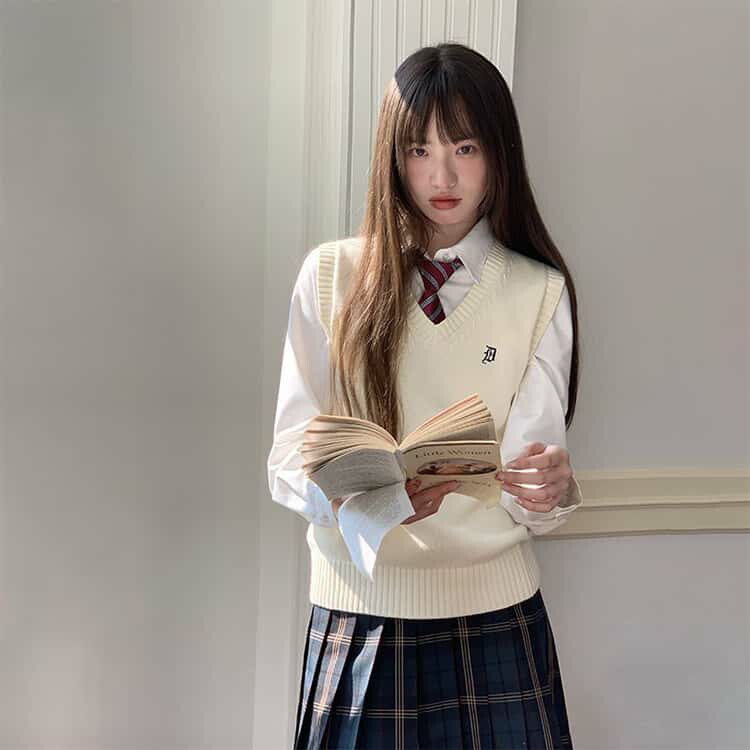 スクールベスト 女子 学生服 制服 ニットベスト Vネック ニットセーター ノースリーブ 袖なし 重ね着 ゆったり 薄手 無地 可愛い お洒落 通学 通勤 中学生 学院風 全5色 高校生