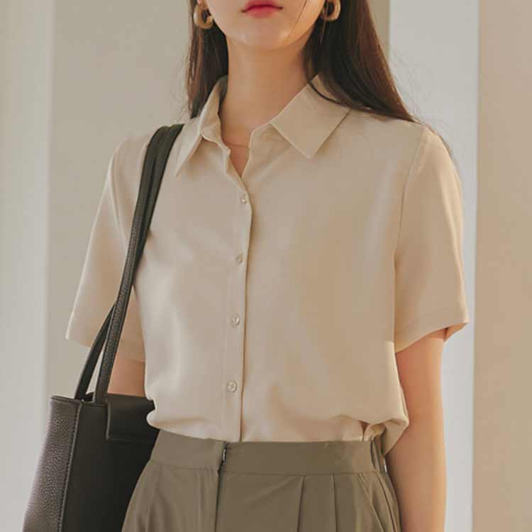 ワイシャツ 半袖ワイシャツ トップス レディースファッション 続々登場 ピンク ホワイト ブラック ベージュ ブルー ネイビー S M L