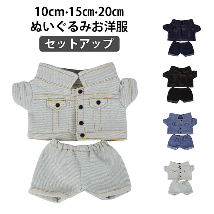 ぬい服 デニムジャケット デニムパンツ セットアップ 10cm 15cm 20cm ぬいぐるみ 服 着せ替え 洋服 コスチューム ぬいぐるみ用 デニム ジャケット パンツ 上下 2点セット ぬ ズボン