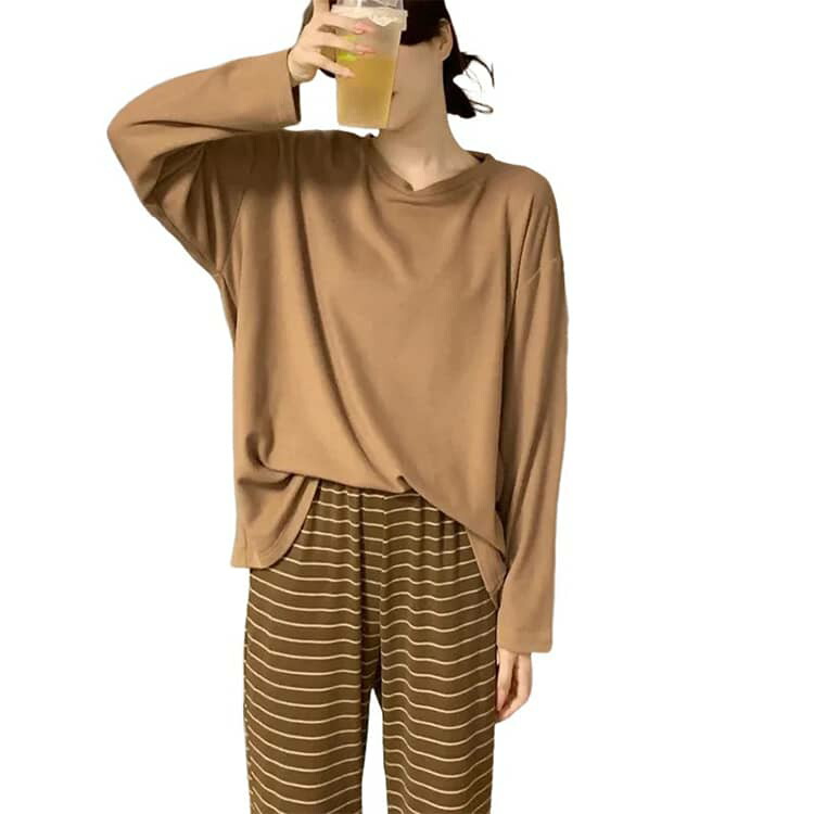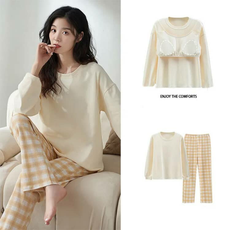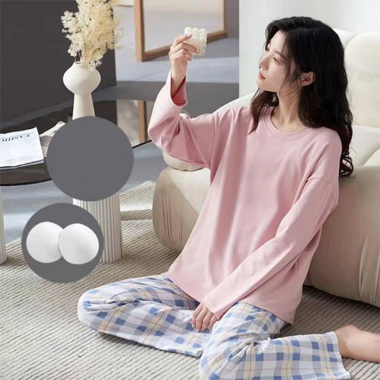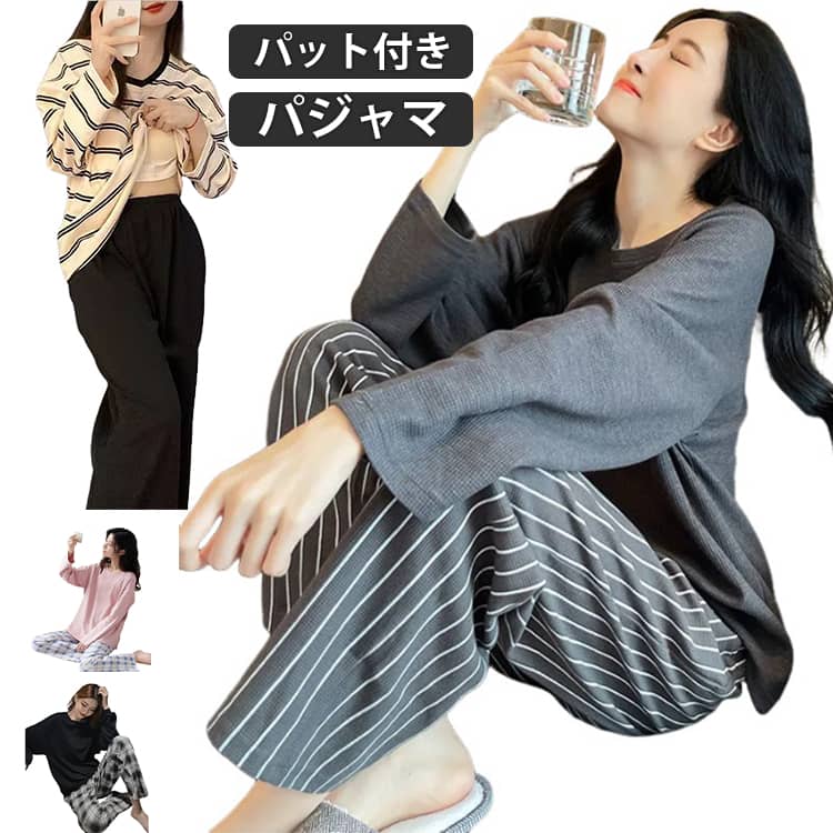 ルームウェア レディース 長袖パジャマ カップ付き 春 パッド付き 丸首 パジャマ 夏 かわいい 部屋着 可愛いパジャマ ゆったり 春服 長袖 襟なし 入院 産後 かぶるだけ 大きいサイズ