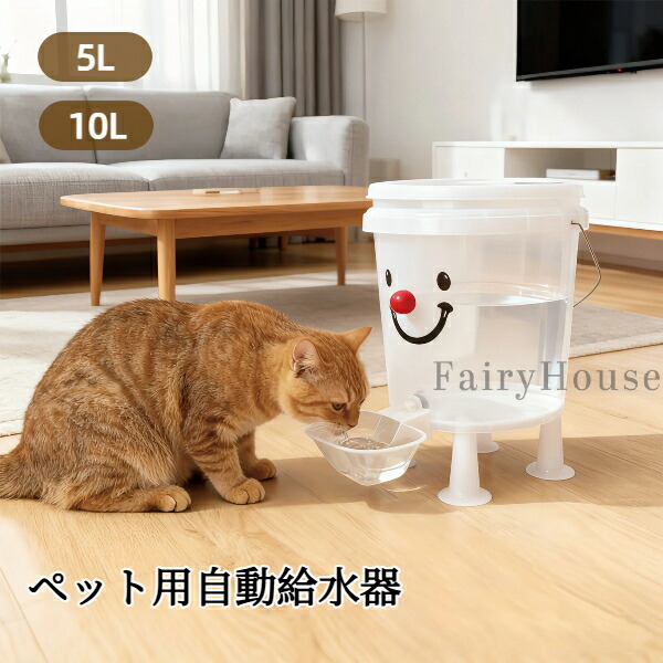 ペット自動給水器 大容量 10L 5L 電気不要 屋内 屋外兼用 猫用 犬用 耐倒れ設計 旅行 留守番に最適 モダンデザイン 清潔保持