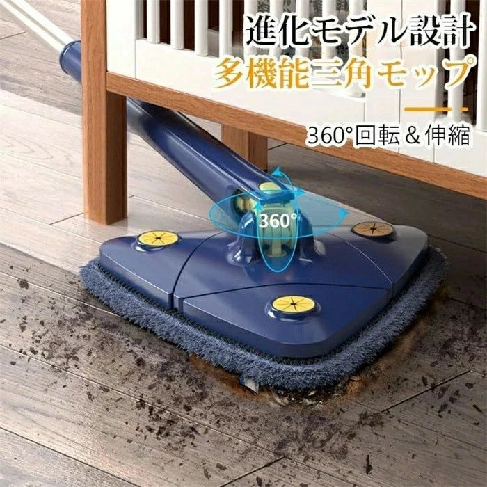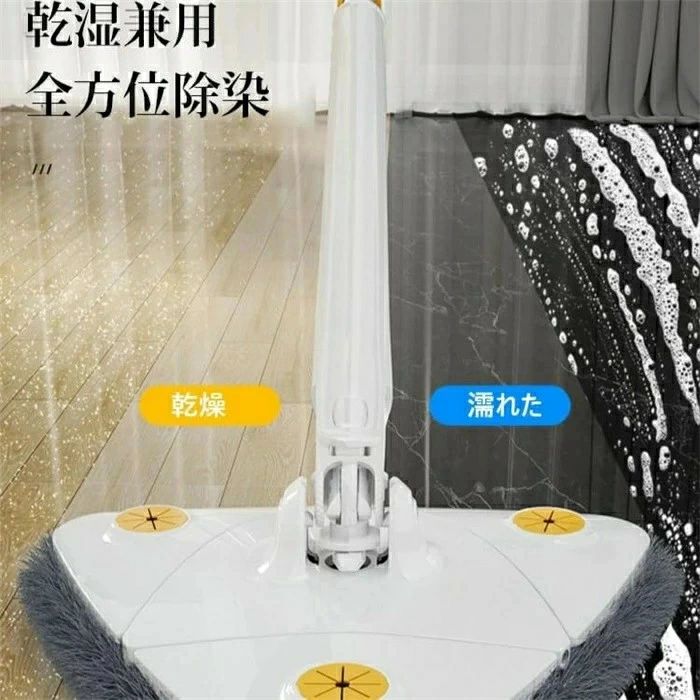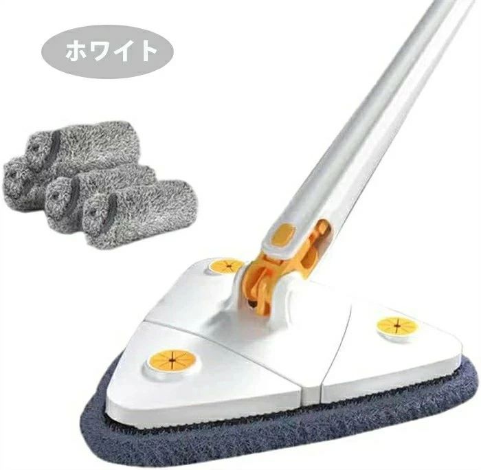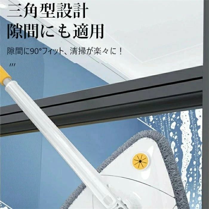 床 天井 壁用 モップスティック 腰曲げず 回転式 伸縮式 乾湿両用 ワンド 調整可能 水拭きモップ 水切り 絞り機能付き三角モップ
