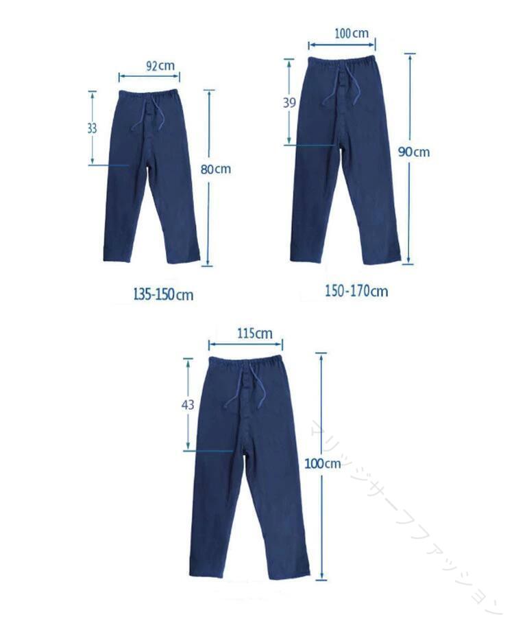 【M】身長135-150cm 着丈80cm ウエスト92cm 【L】身長155-170cm 着丈90cm ウエスト100cm 【XL】身長170-185cm 着丈100cm ウエスト115cm
