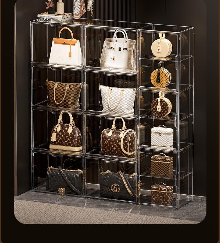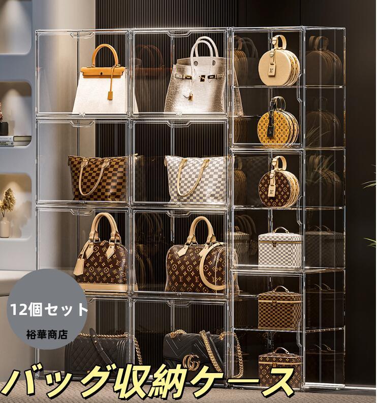 .バッグ 収納 ケース バッグ 収納 ボックス ショーケース フィギュア ボックス 12 個 セット 透明 PET で 中身 が 可視 できる カバン 収納 用 防塵 防水 機能 付き の 整理 整頓 お片付け に 最適 な 小物 収納 と 雑物 収納 が 可能 な 展示 収納 ケース です。プレゼント や ギフト にも おすすめ の アイテム です。。