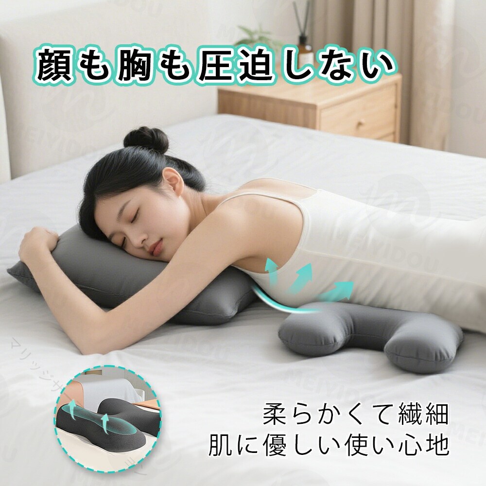 胸当てマクラ 低反発 うつ伏せ枕 胸当 寝具 枕 抱き枕 枕 人気 ダークグレー ライトグレー