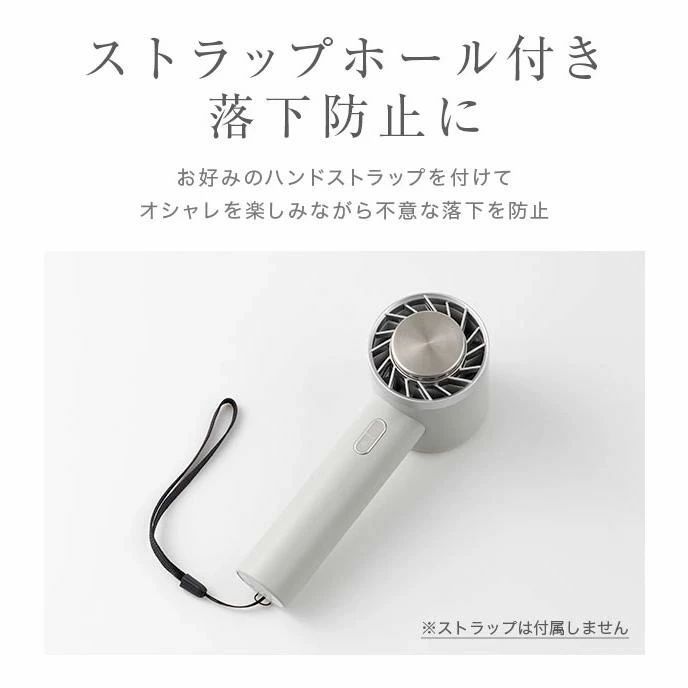 扇風機のグリップ部分にはストラップホール付き。お好みでハンドストラップを取り付けて落下防止にも。(ストラップは付属しません)