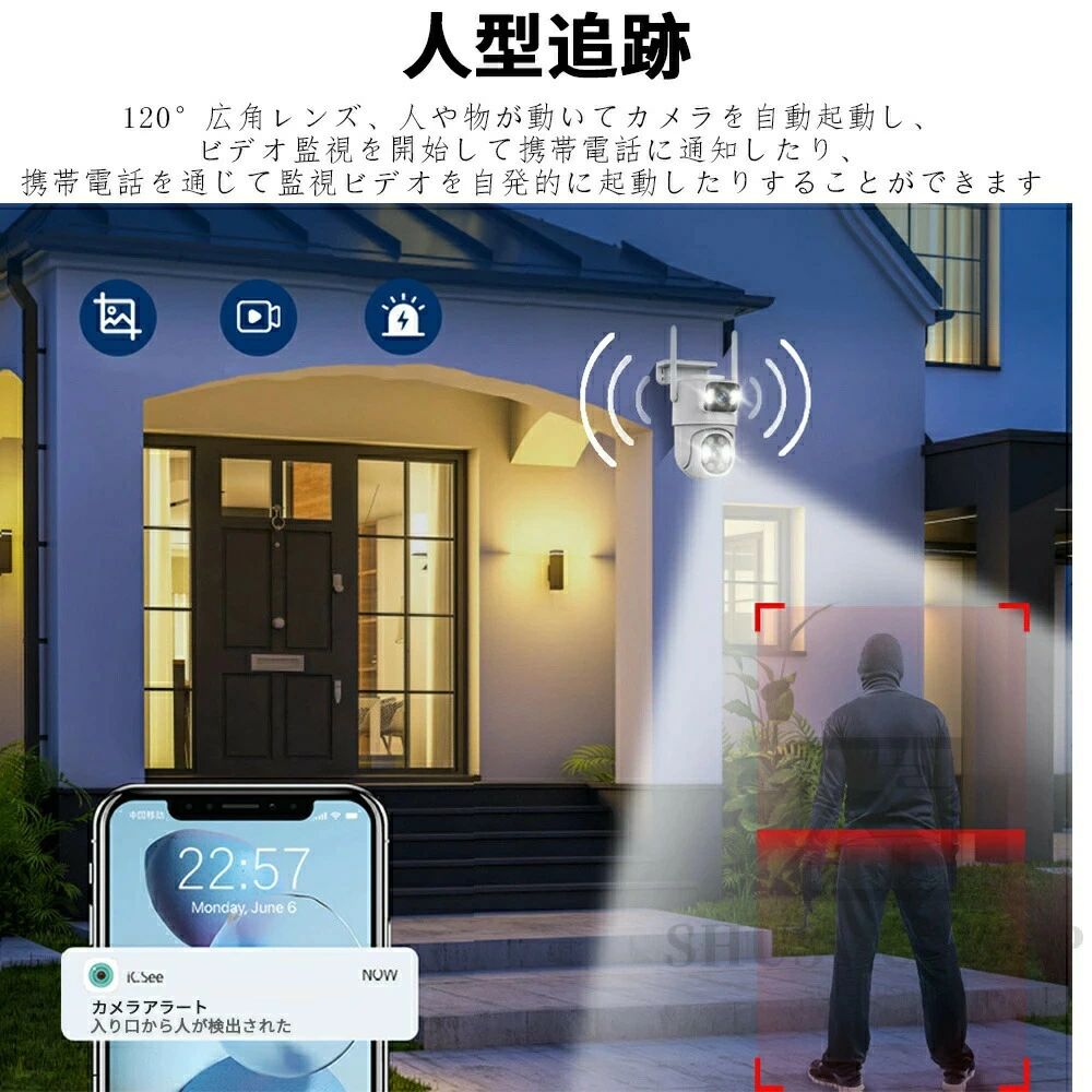 防犯カメラ 屋外 600万画素 家庭用 ワイヤレス デュアルレンズ wifi 防水 録画 AI人感検知自動追跡 双方向通話 単純な設定 工事不要 屋外セキュリティカメラ 夜間カラー 録音 sdカード録画 双方向通話 wifi無し 動体検知 自動追跡 防水 スマホ