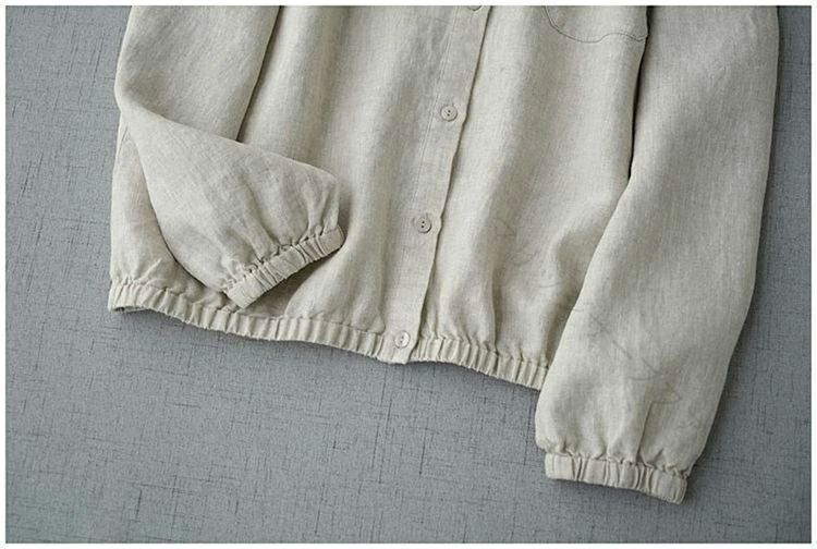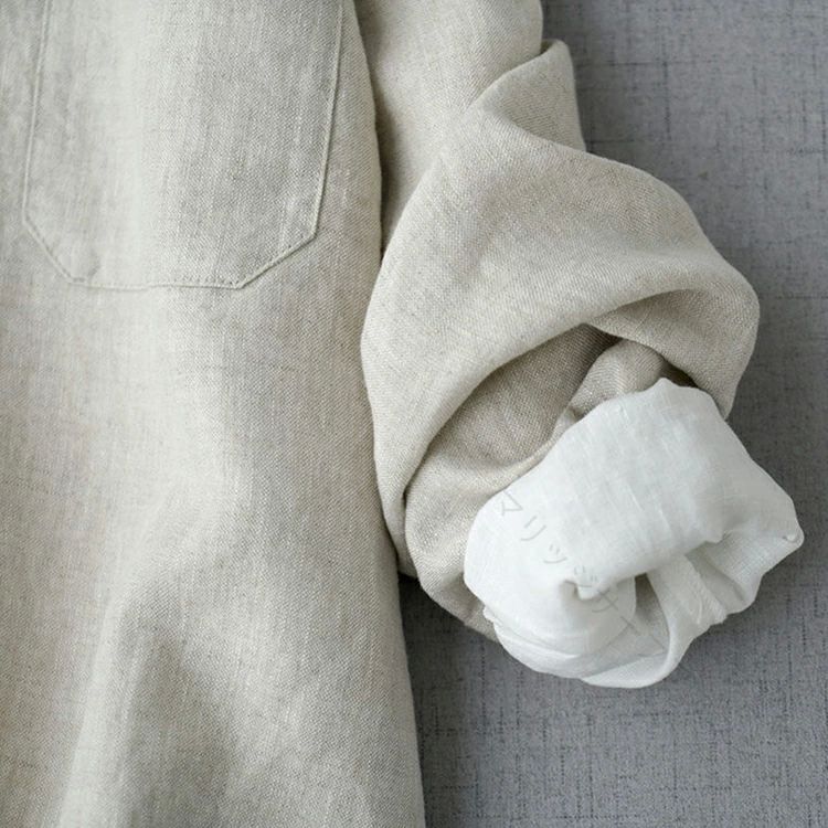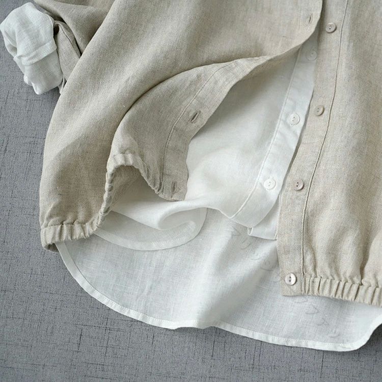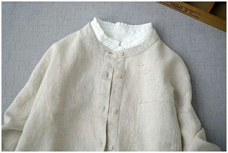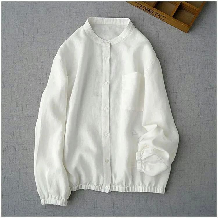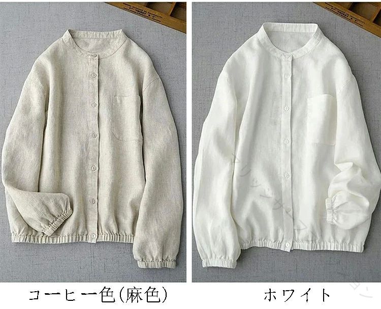きれいめ トップス ゆったり スタンドカラー ボタンダウン ブラウス シャツ 無地 長袖ダウンジャケット コート 綿麻