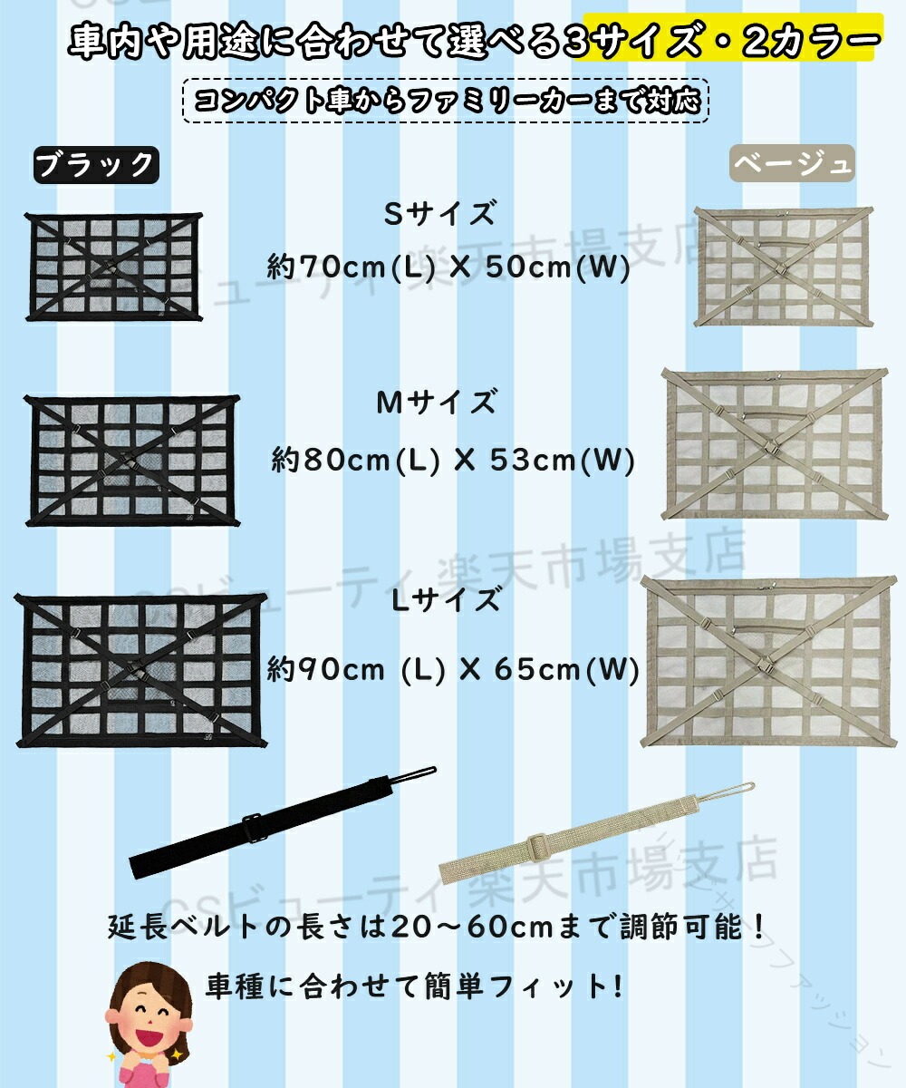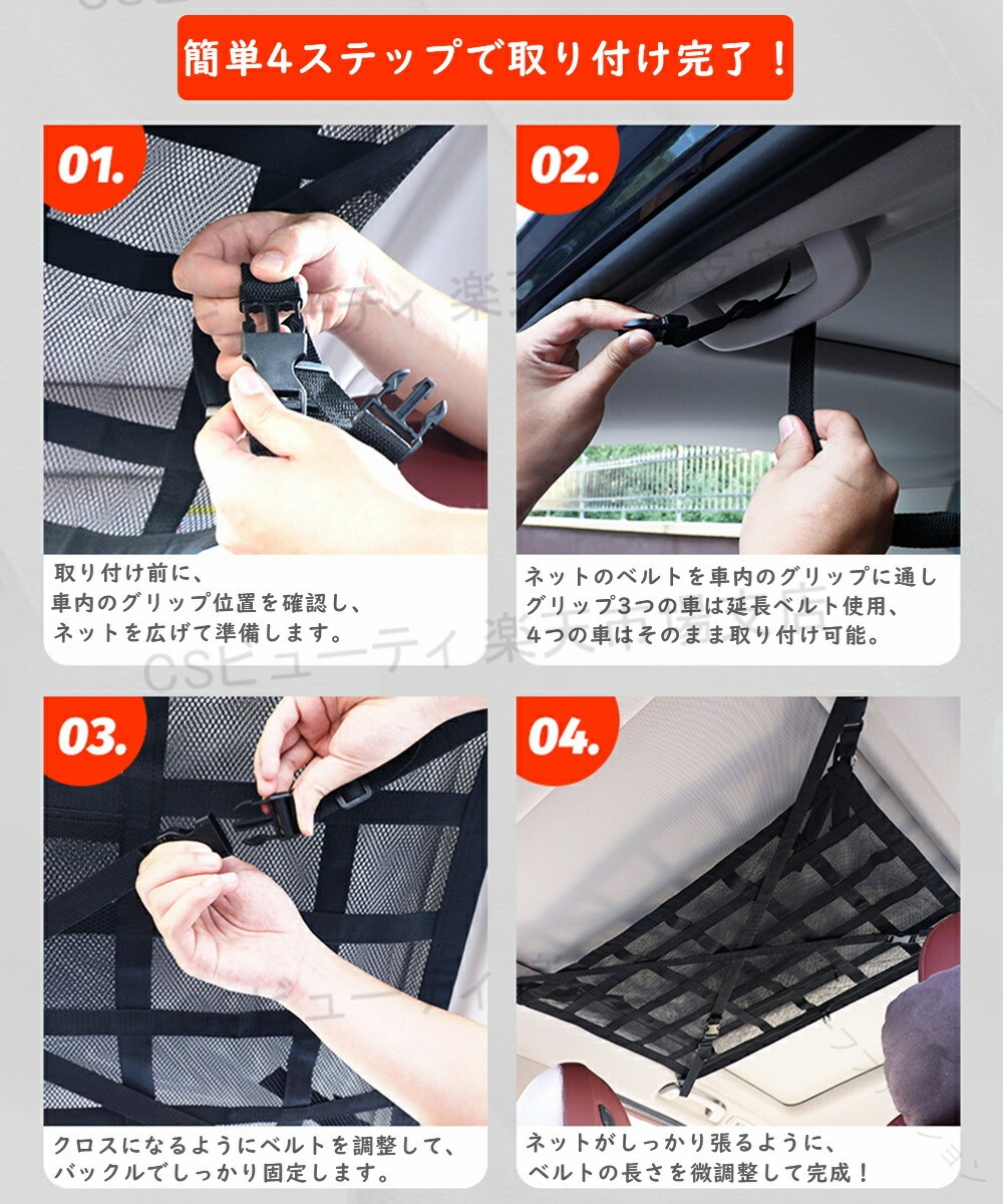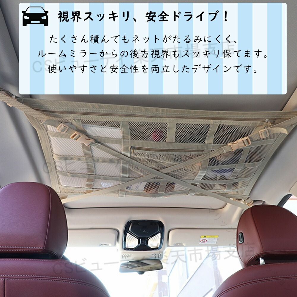 .3つ グリップ 車 対応 の 天井 ネット は 車内 の 収納 に 最適 な 車用 天井 収納 ネット で 軽自動車 や ミニバン の 後部 座席 で 落下 防止 と 快適 な 収納 効果 を 発揮 します。 ジッパー 付き で 荷物 の 取り出し も 便利 な 汎用 サイズ S M L と 延長 ベルト 付き です。。