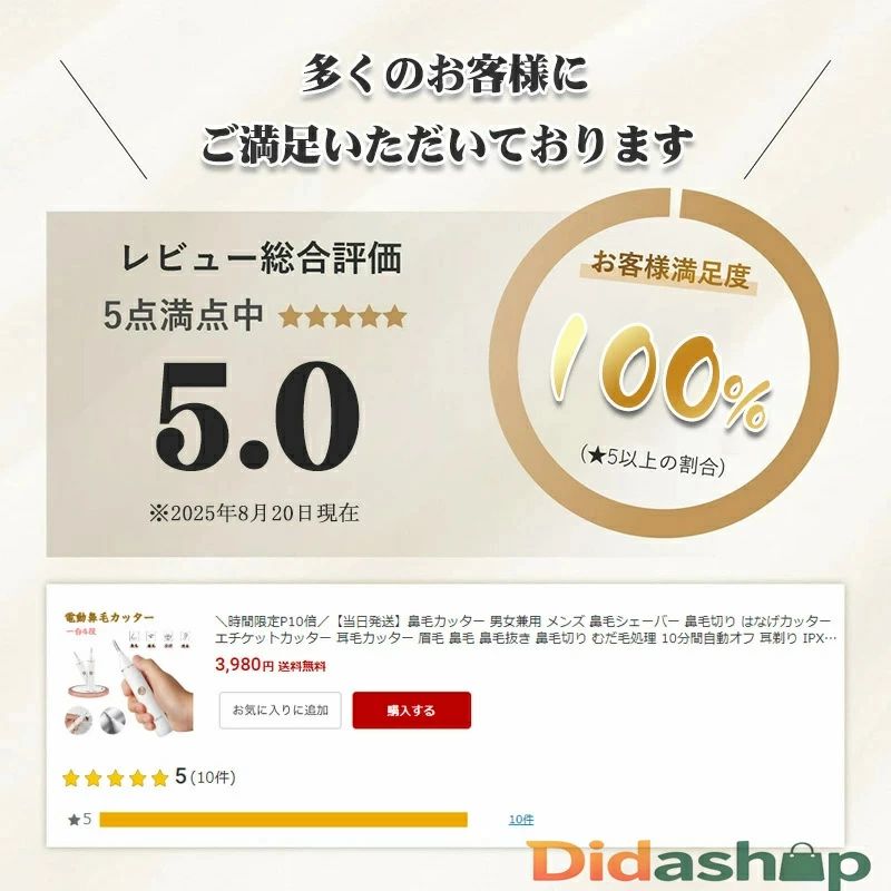 IPX5防水 耳剃り 10分間自動オフ