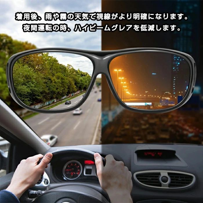 .メガネ の 上 から かける 偏光 オーバーグラス サングラス は 夜間 用 と 昼夜 兼用 で ナイト スポーツ や ドライブ、夜釣り に 最適 です。 メンズ 向け の デザイン で 両親 ギフト としても 喜ばれます。 夜間 運転 時 の まぶしさ 軽減 に 効果的 な 機能 を 備えています。。