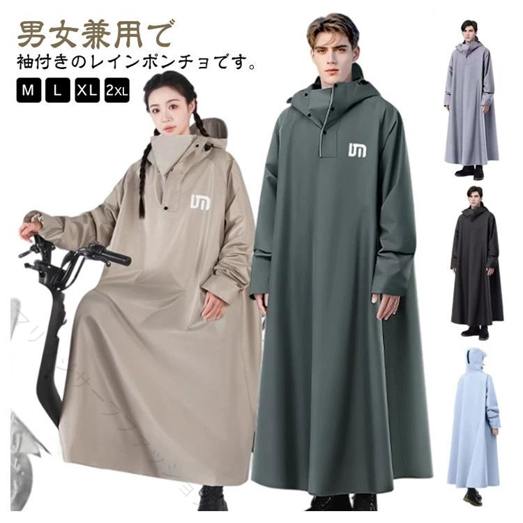 レインポンチョ メンズ 男女兼用 ロン レディースファッション 新作 ブラック ベージュ グリーン グレー ライトブルー M L XL 2XL