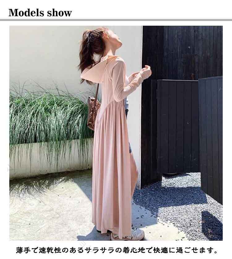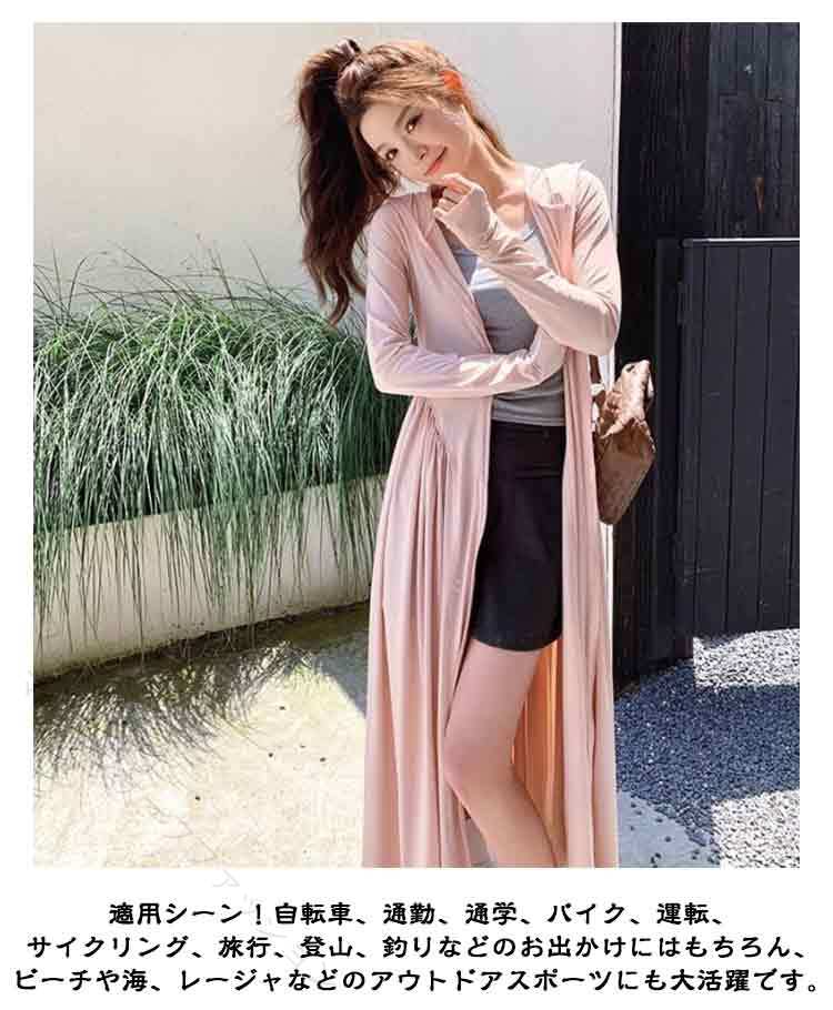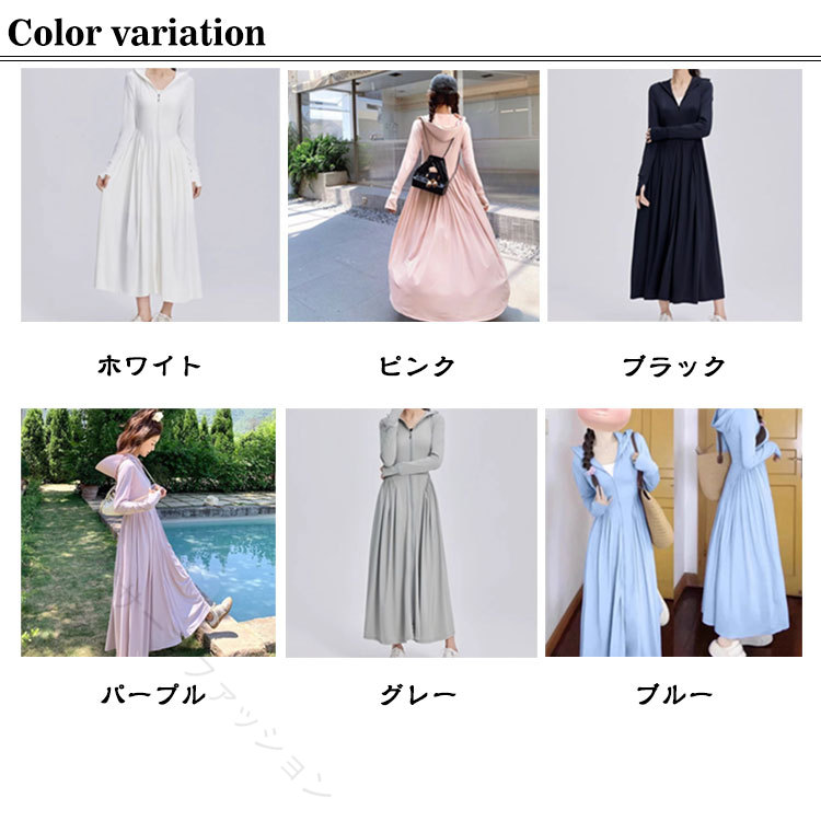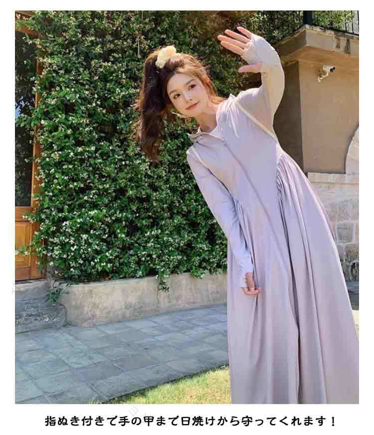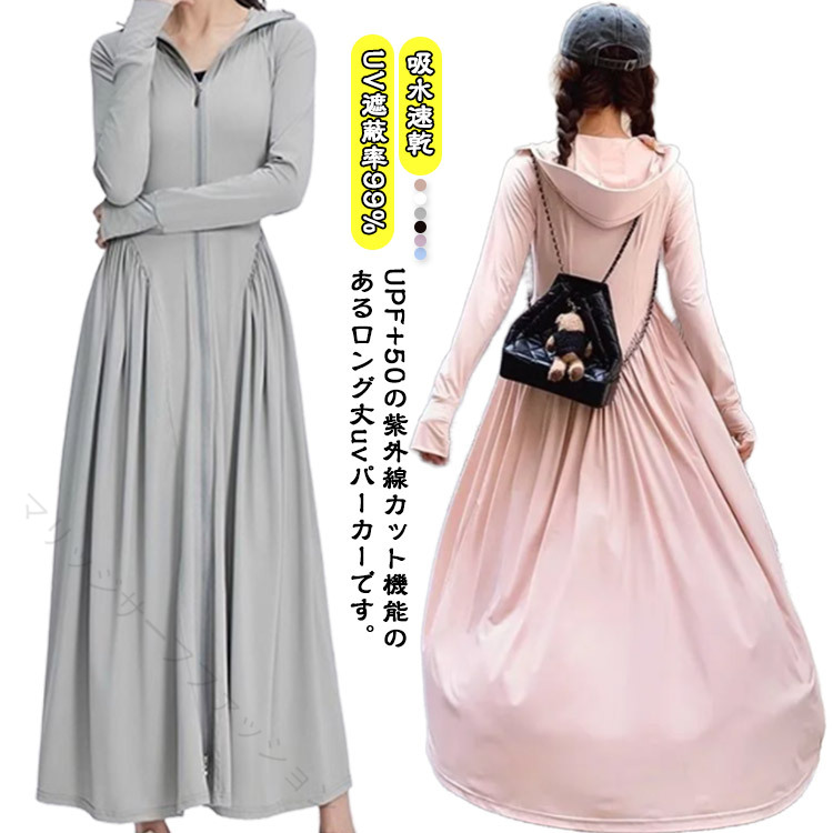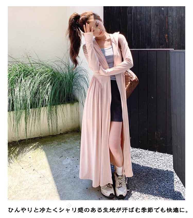 UVカット パーカー 超ロング 接触冷 レディースファッション 続々入荷中 ホワイト ピンク ブラック パープル グレー ブルー M L