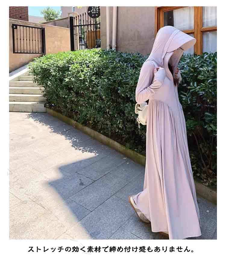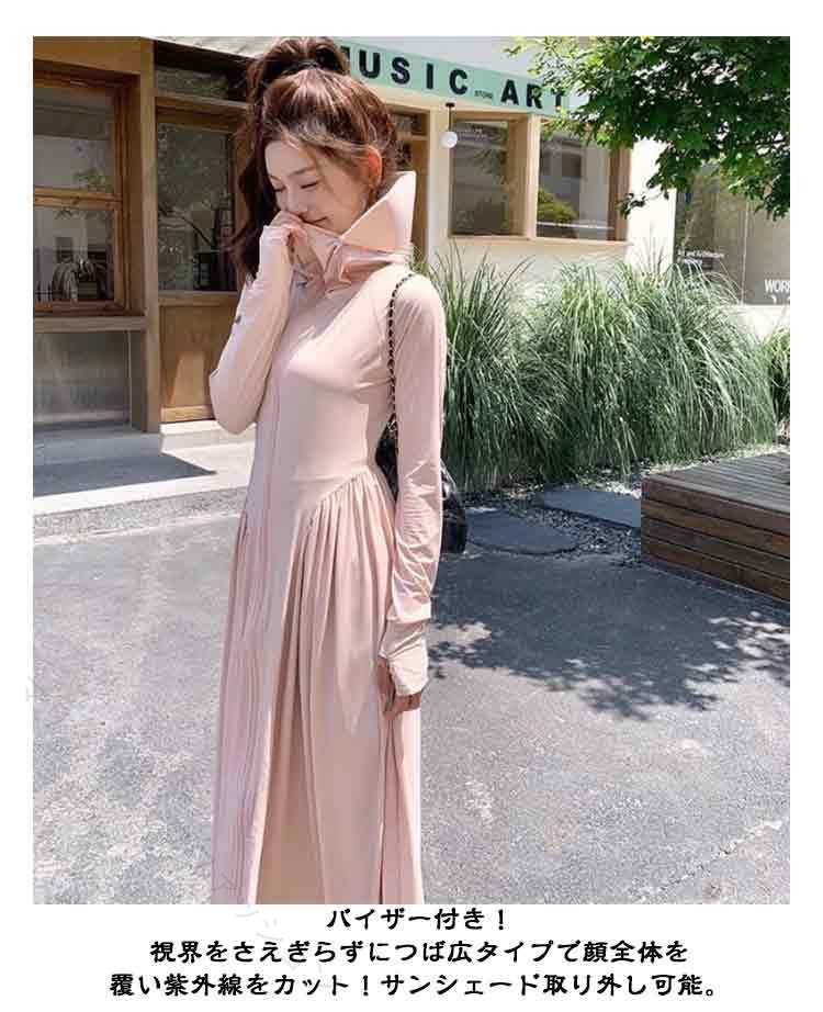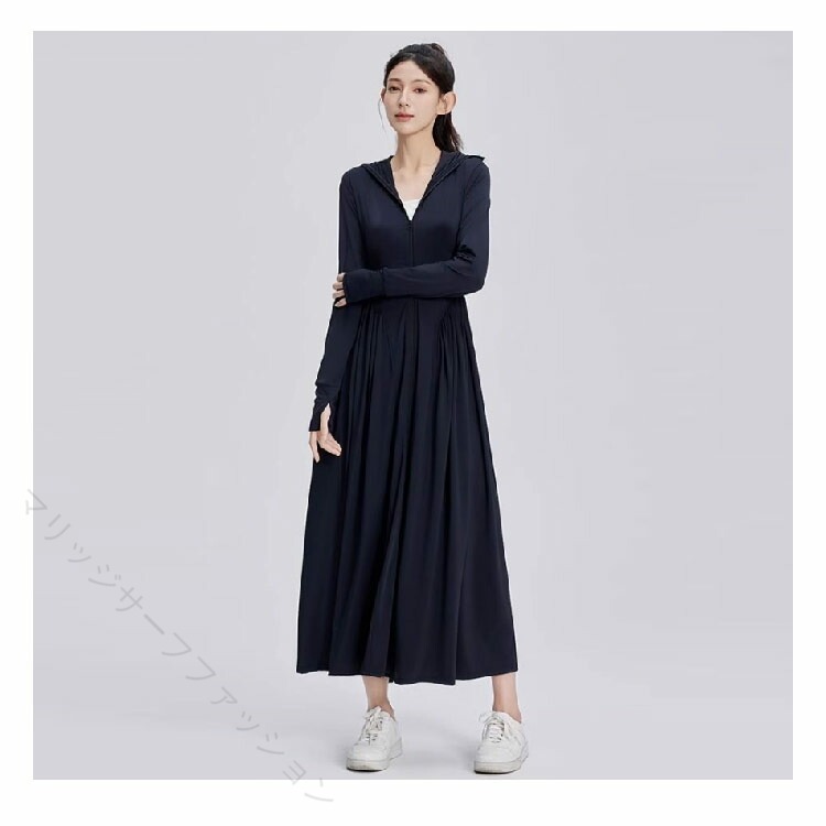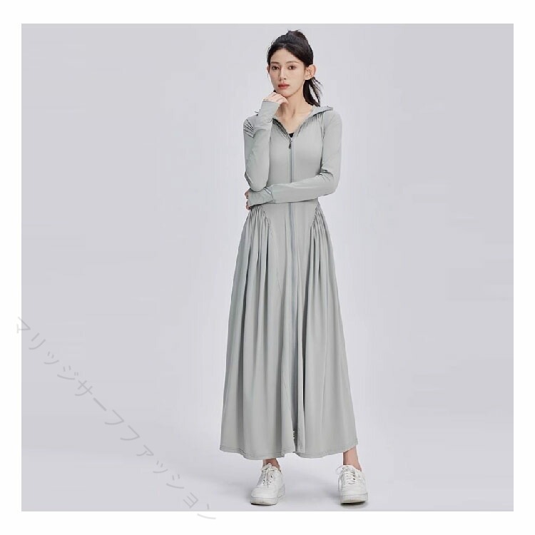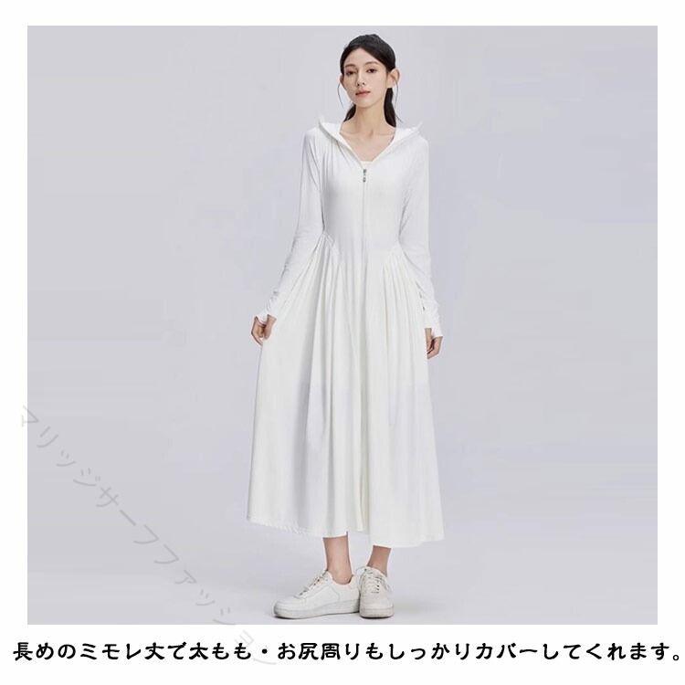 UVカット パーカー 超ロング 接触冷感 ワンピース ラッシュガード 薄手 長袖 UPF50+ 全身カバー 日焼け止め つば広 UV遮蔽率99% 涼しい 軽量 自転車 通勤 紫外線対策 大きいサイズ