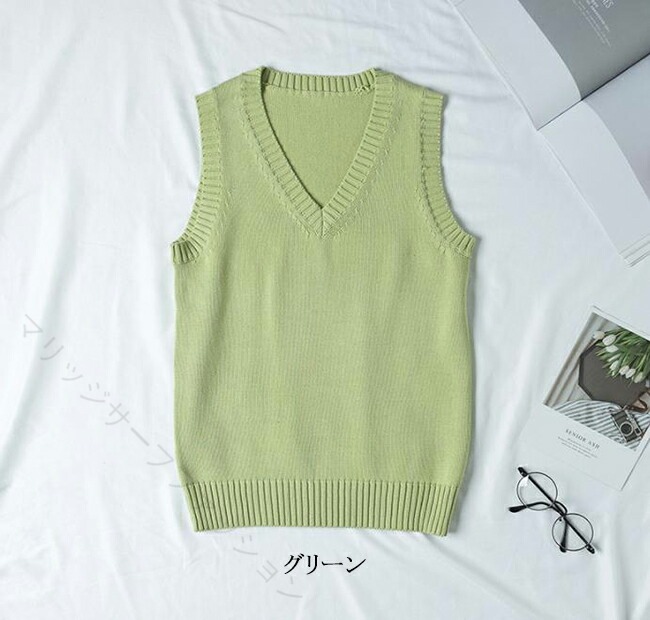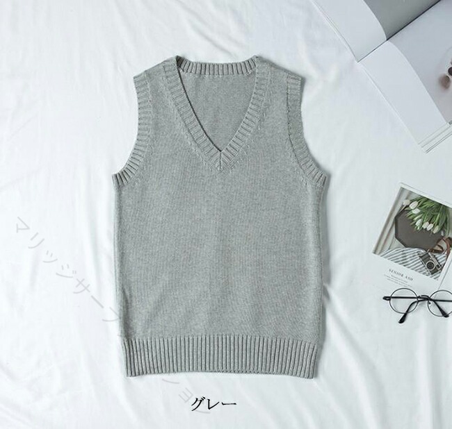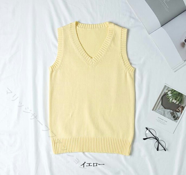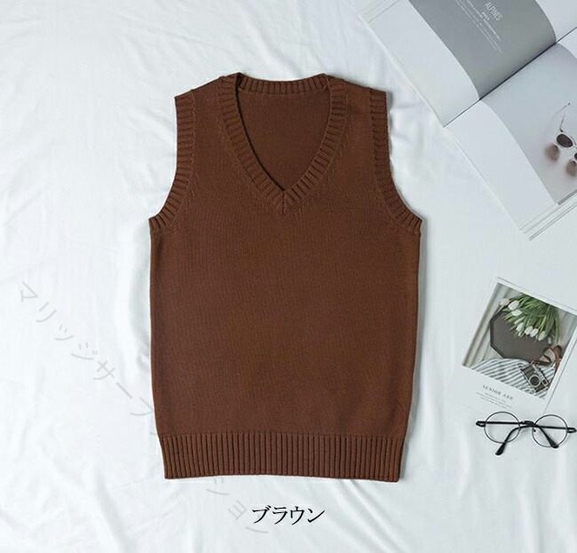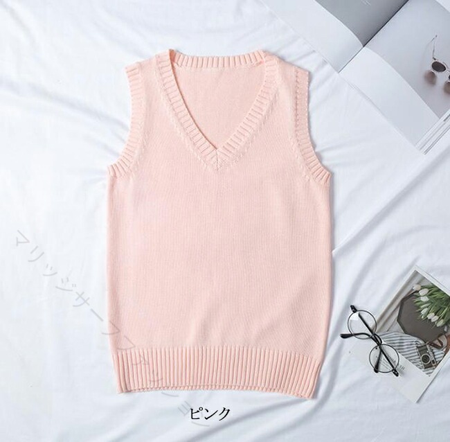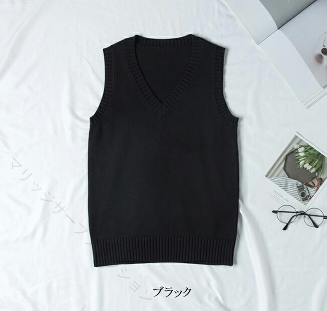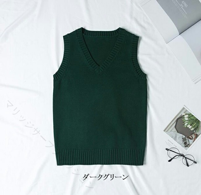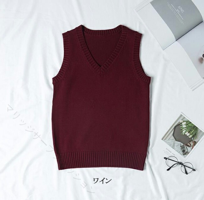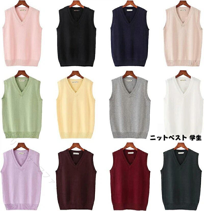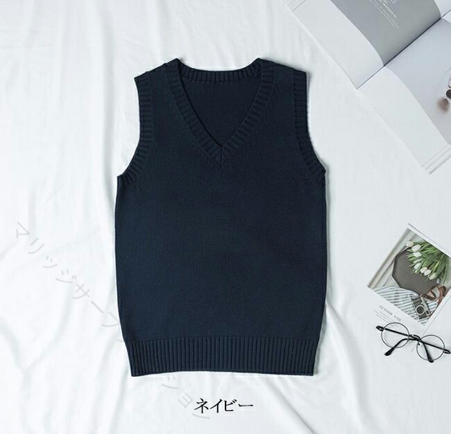 ニットベスト Vネック ベスト 綿100% 学生服 制服 通学 高校生 中学生 レディース メンズ 男女兼用 軽量 無地 学校 春夏秋冬 学生ニット スクー 入学式