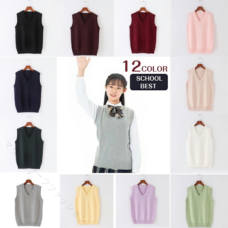ニットベスト Vネック ベスト 綿10 キッズ トップス ベスト 続々登場 ブラック ネイビー ホワイト ワイン グレー ピンク イエロー パープル グリーン ブラウン ダークグリーン ベージュ XS S M L XL XXL