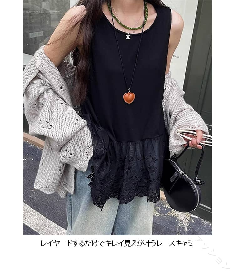 裾レース キャミソール タンクトップ インナー 下着 ナイトウエア 豊富な品揃え ホワイト ブラック S M L XL 2XL 3XL