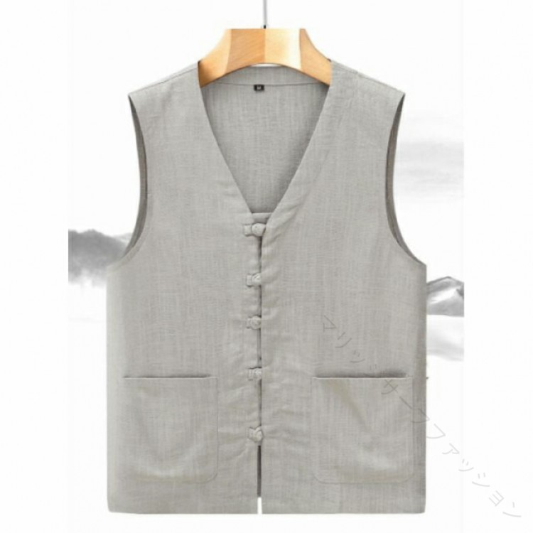 メンズ ベスト リネン 麻 ジレ サマーベスト 前開き 薄手 V ネック リラックス 紳士 おしゃれ 春夏 カジュアル 清涼感 無地 シンプル 父の日 ギフト メンズベスト ビジネス