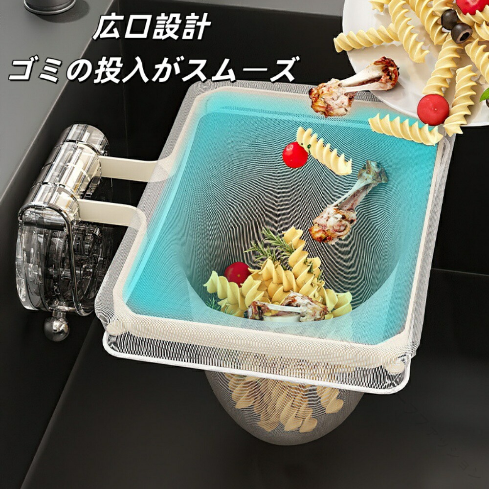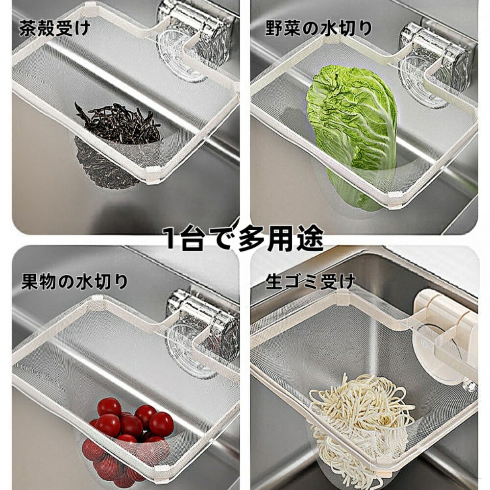 .三角 コーナー 用 水切り ネット ホルダー は 吸盤 式 で 折り畳み 可能 な 浮かせる タイプ です。50枚 と 100枚 の 水切り ネット が 使え、省スペース で 生ゴミ の 処理 や 排水口 の 収納 に 最適。ふきん 掛け として も 便利 で ポイント 消化 に も おすすめ です。。