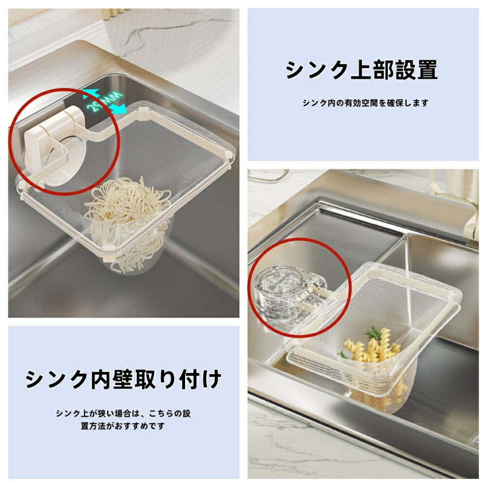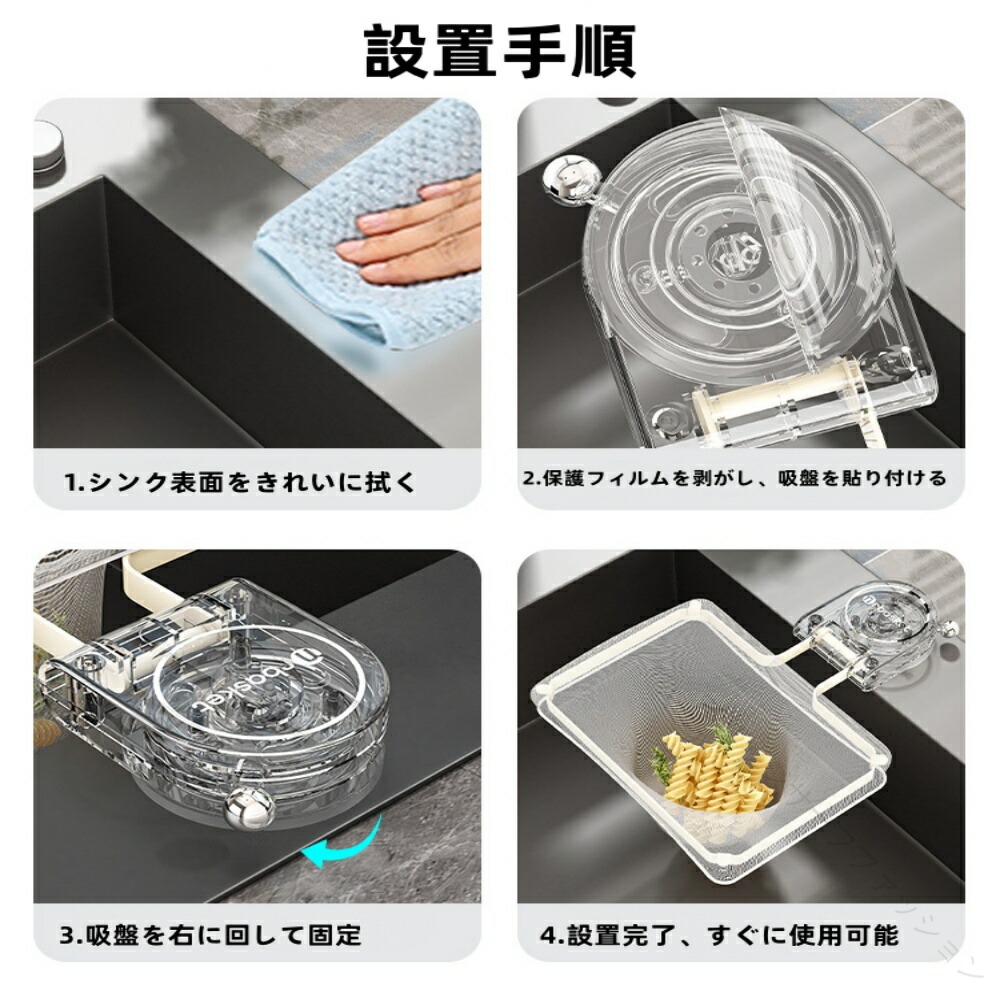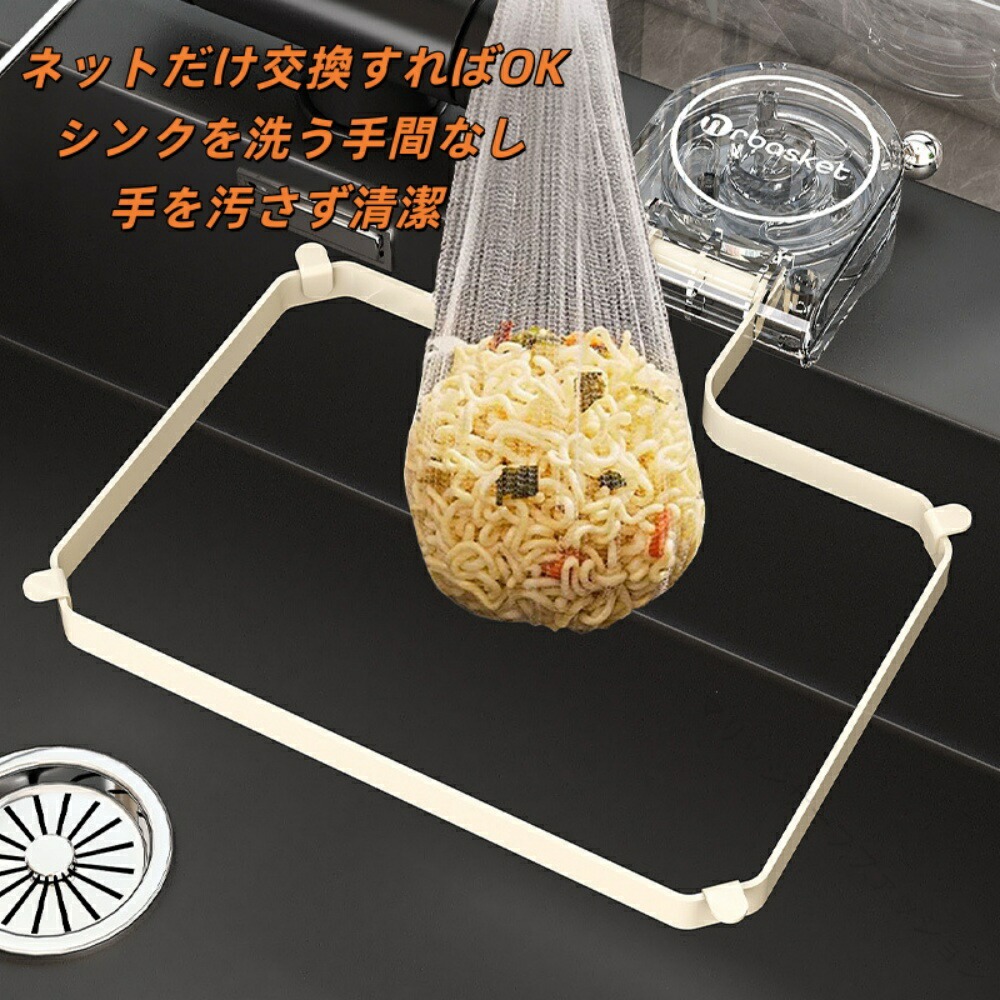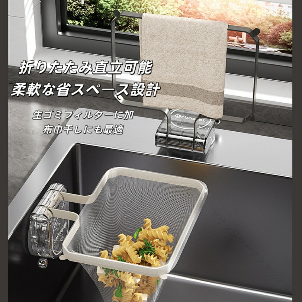 キッチンの生ごみ処理を快適にする三角コーナー水切りネットホルダー!吸盤式&貼り直しOKなので、シンクの好きな位置に設置可能。折り畳み&浮かせる設計で、省スペースを実現し、キッチンをすっきり保ちます。ゴミ箱としても使え、ふきん掛けにも対応。排水口のつまり防止や、生ごみの水切りで臭い対策もバッチリ!取り外し簡単&使いやすいデザインで、お掃除もラクラク。スリム収納で邪魔にならず、便利グッズとして活躍します。おしゃれなデザインでキッチンにもなじみやすく、機能性と美しさを兼ね備えたアイテムです。・大人気の水切りネットホルダー・吸盤式で簡単に取り付けられます。・折り畳み式なので使用後はコンパクトに折りたたんで収納できます。・貼り直し可能・フレームを上げて省スペースにも・シンクの詰まり防止、生ごみを掃除は水切りネットを捨てるだけで便利・シンクを清潔に保てます。・洗った野菜や果物の水切りホルダーとして使用カラー:ブラック、透明