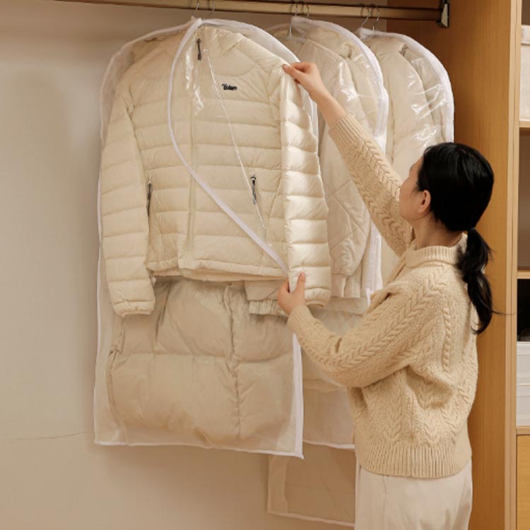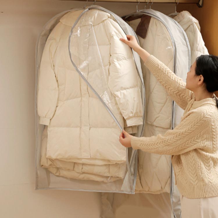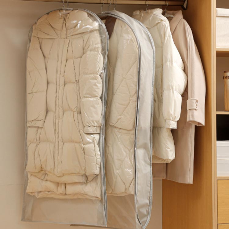 ダウンジャケット 衣類圧縮袋 洋服カバー 衣類カバー 圧縮袋 ファスナー式 吊り下げ ジャケット スペース節約 ダウンコート 収納カバー 洋服収納袋 コート ダウンジャケ 不要