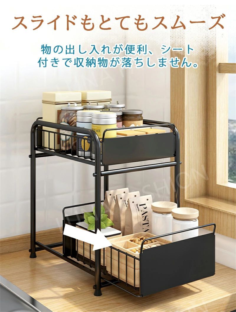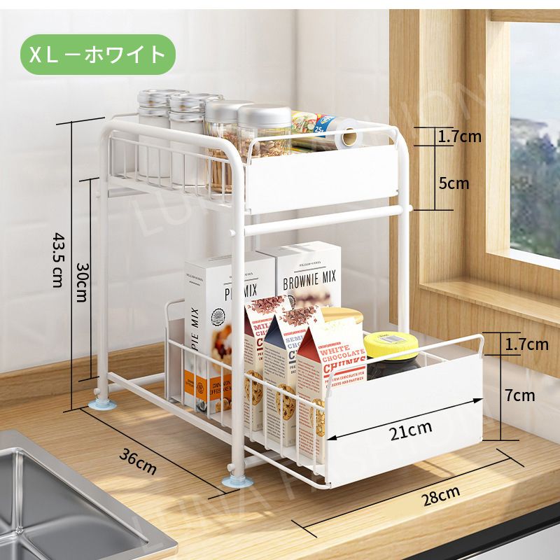 シンク下スライドラック 引き出し スライド式 白 引き出し式収納 シンク下収納 S~XL キッチン用 多機能のキ シンク下収納ラック