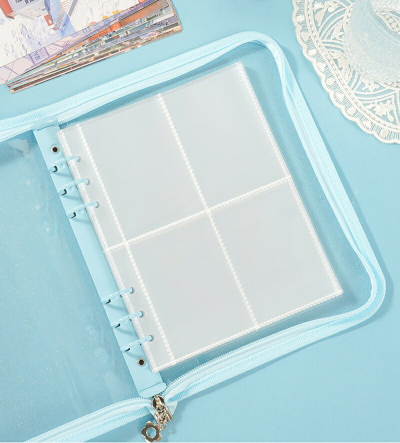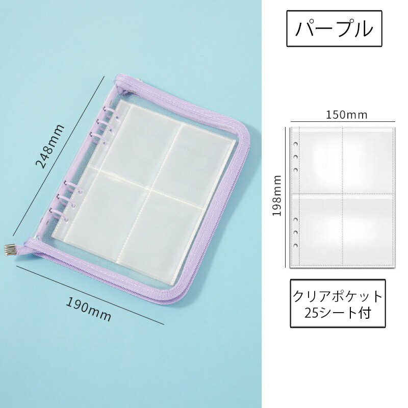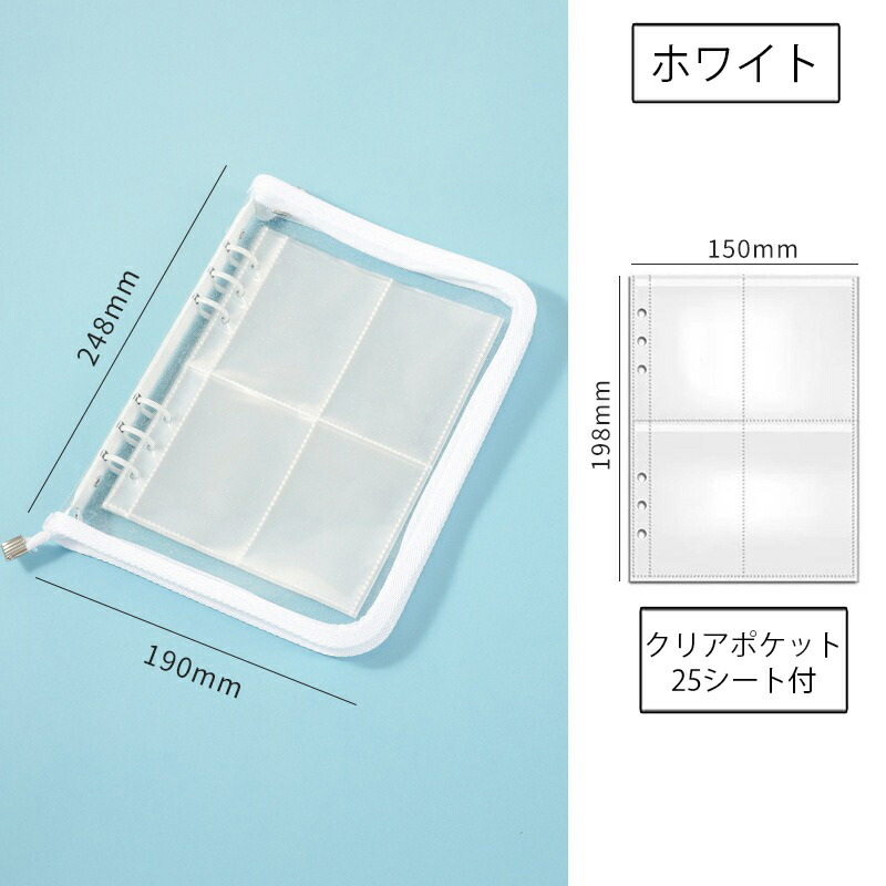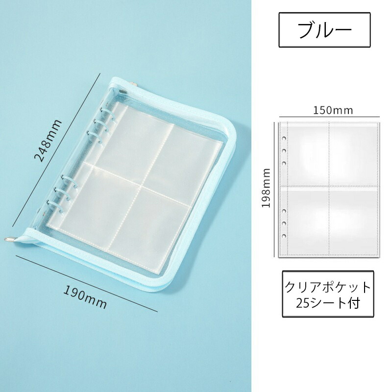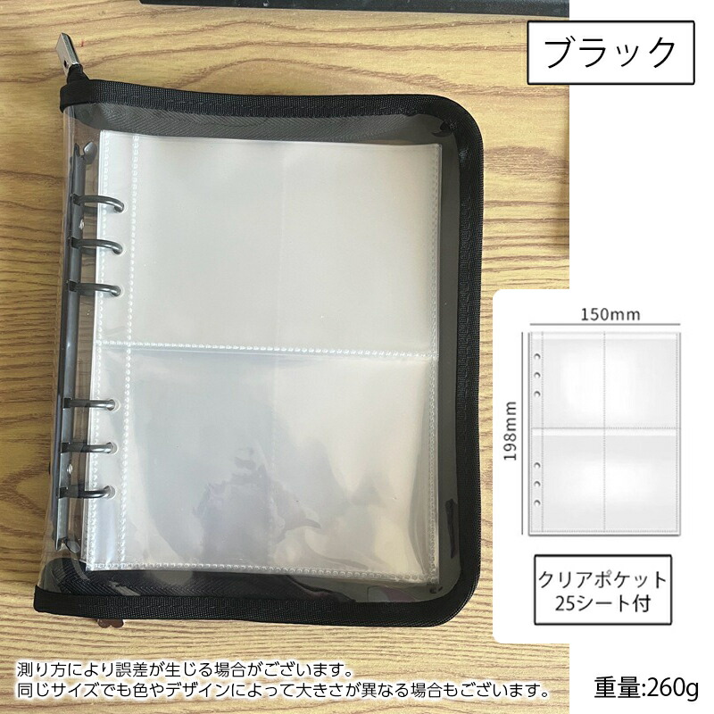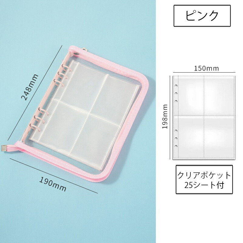 バインダー A5 6穴 リフィル付き クリアポケット 25枚 ファスナー付き リングバインダー ファイル トレカ トレーディングカード 保管 収納 収集 コレクション 手帳 透明 シンプル お クリア