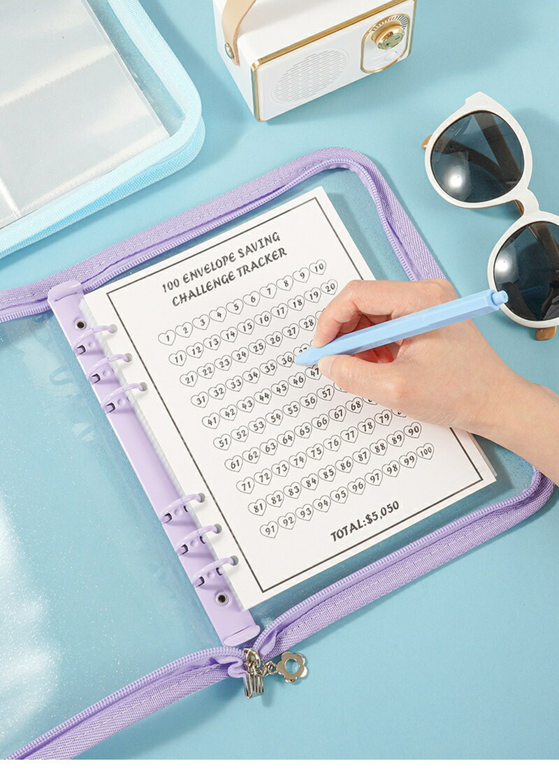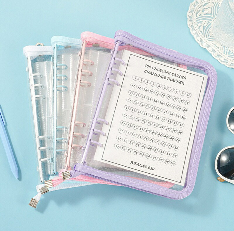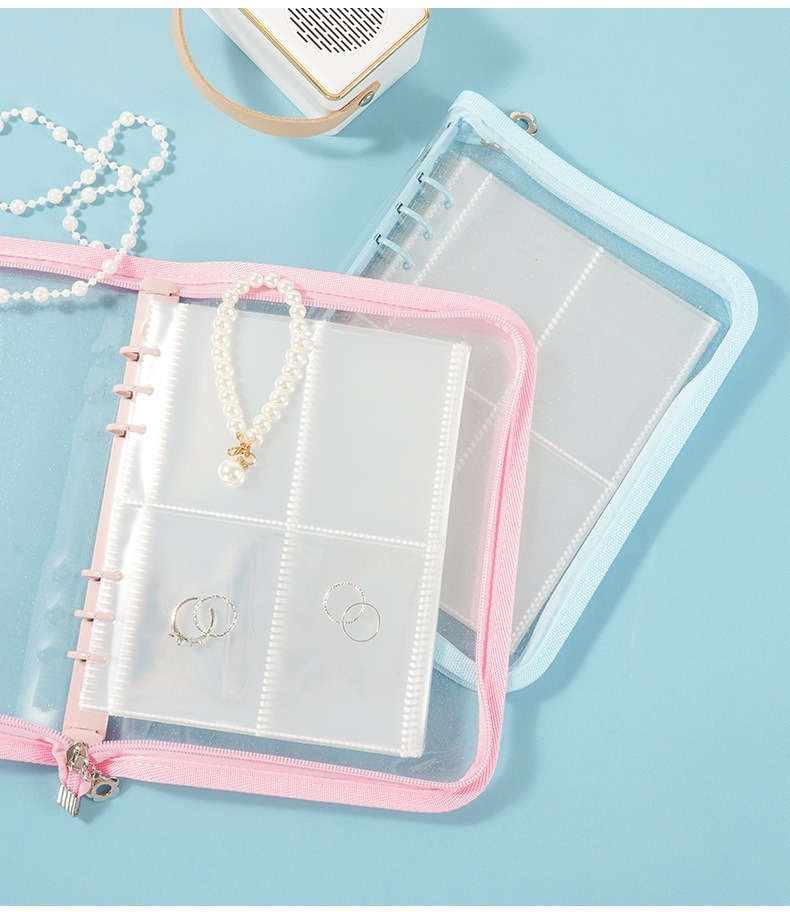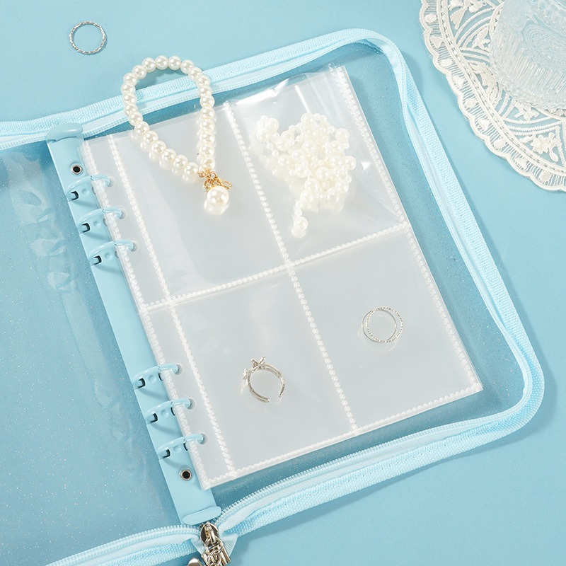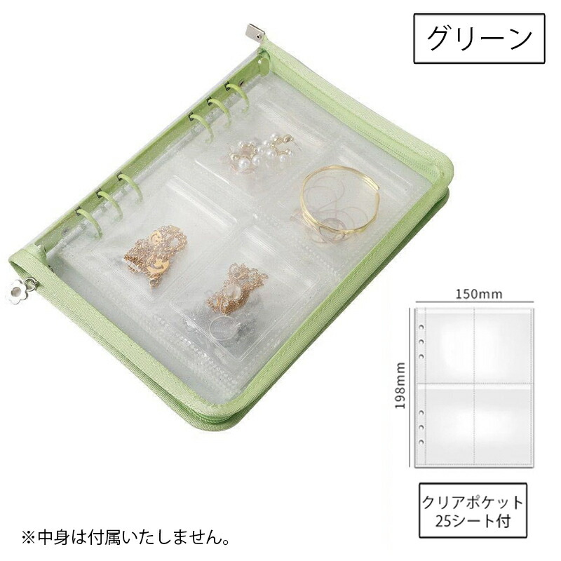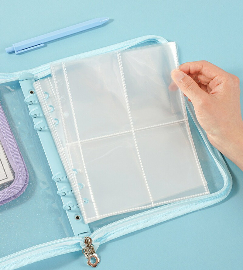 バインダー A5 6穴 リフィル付き クリアポケット 25枚 ファスナー付き リングバインダー ファイル トレカ トレーディングカード 保管 収納 収集 コレクション 手帳 透明 シンプル お クリア