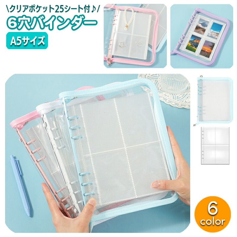 a5サイズのクリアタイプの6穴バインダーです。