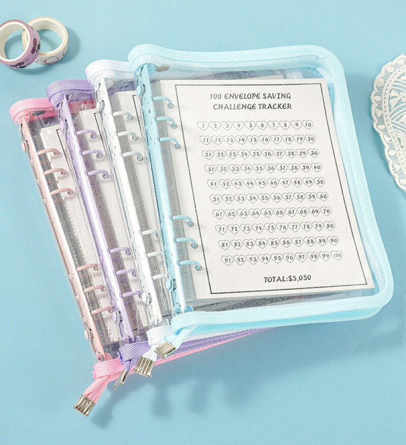 バインダー A5 6穴 リフィル付き 日用品雑貨 文房具 手芸 人気 パープル ブルー ホワイト ピンク グリーン ブラック