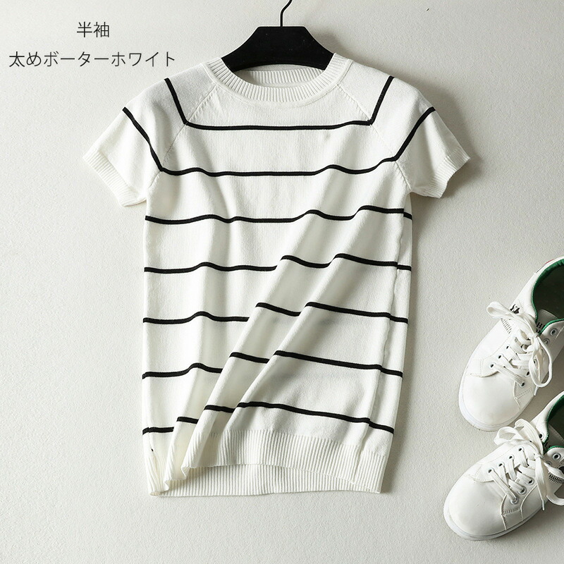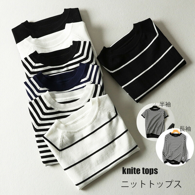 ニット トップス レディース 半袖 長 トップス ニット セーター セーター 早い者勝ち 半袖無地ホワイト 半袖無地ブラック 半袖太めボーダーホワイト 半袖太めボーダーブラック 半袖細めボーダーホワイト 半袖細めボーダーブラック 半袖細めボーダーネイビー 長袖無地ホワイト 長袖無地ブラック 長袖太めボーダーホワイト 長袖太めボーダーブラック 長袖細めボーダーブラック 長袖細めボーダーネイビー M L XL