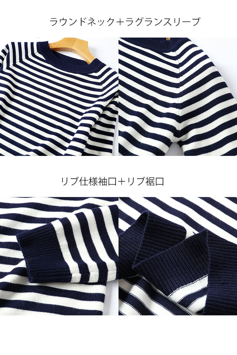 ニット トップス レディース 半袖 長袖 Tシャツ セーター ボーダー柄 クルーネック 半袖Tシャツ 長袖Tシャツ プルオーバー フレンチスリーブ ラグラン ボーダーTシャツ 半袖ニット サ シンプル