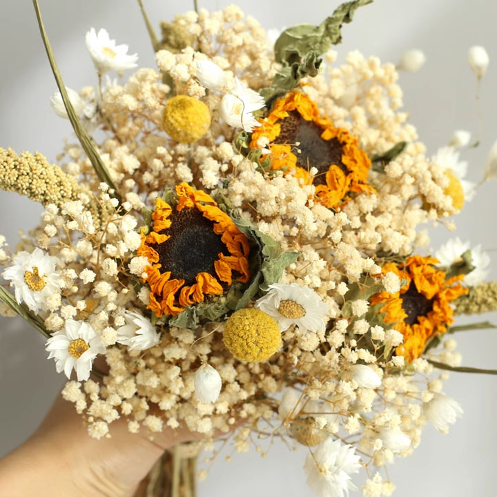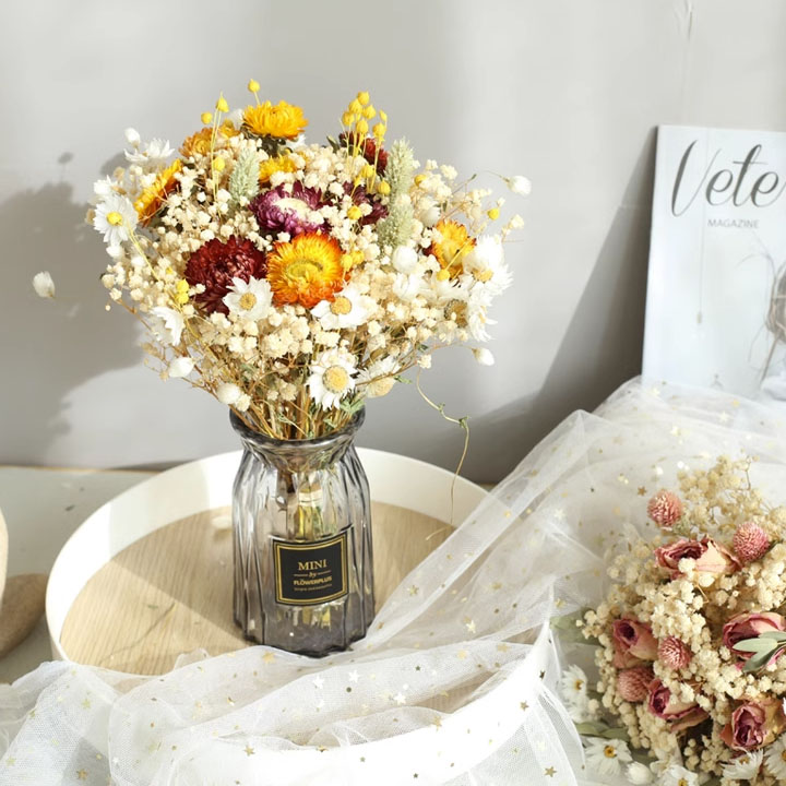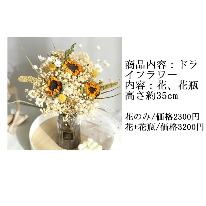 ドライフラワー ガラス花瓶 バラ ひまわり デイジー 自然 ギフト セット販売 生花 花材 綺麗 かすみそう 部屋飾り 敬老の日 母の日 女性 花 プレゼント 誕生日 開店祝 壁飾 定年 退職 開院祝